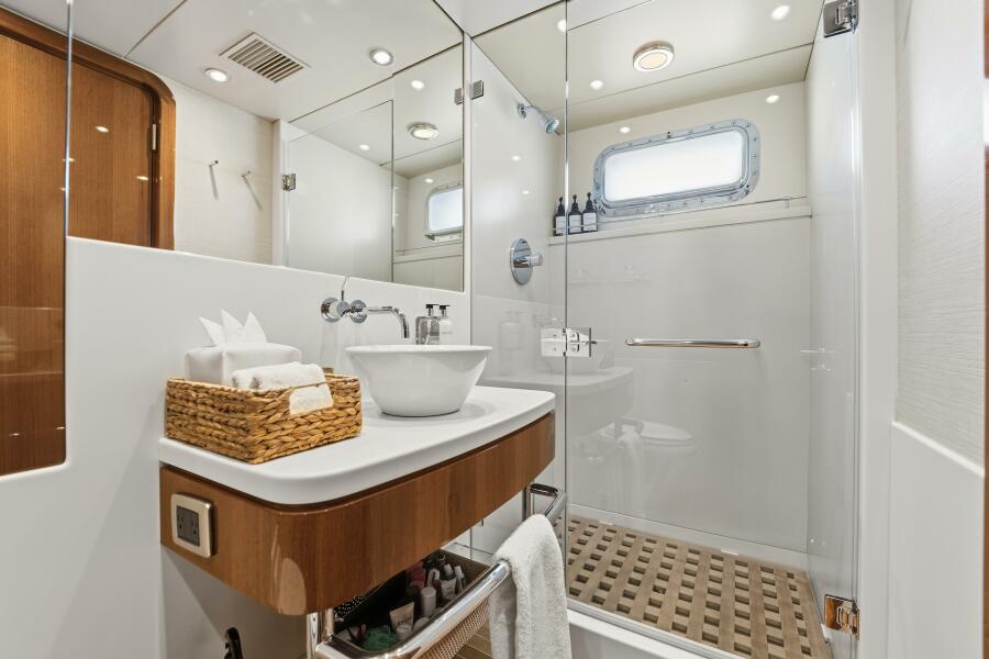 Penelope accommodates eight guests in four well-appointed staterooms. The full-beam master suite features a king berth with an en-suite head offering dual sinks and a separate shower.