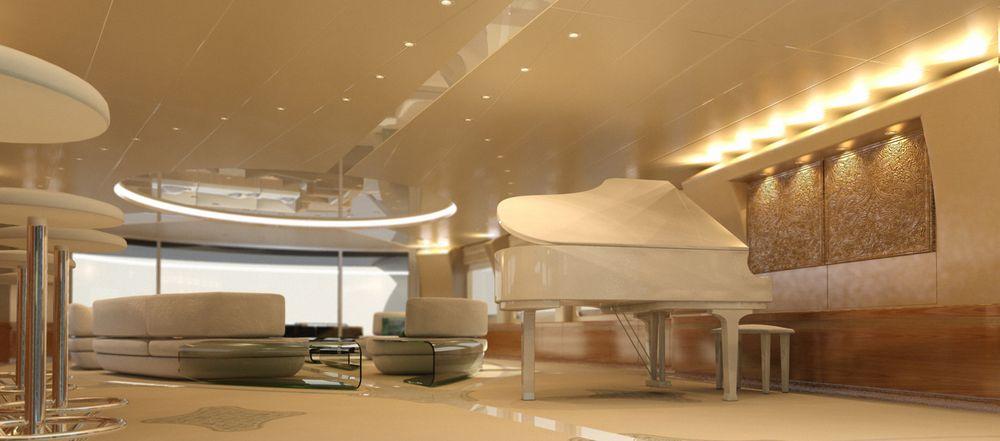 The immense space of this megayacht is the definition of luxury, and the social and private areas are proof of its status. The lavish furniture and the exquisite décor, along with the seven luxurious suites, convey a certain sense of royalty. There are 12 cabins for crew members.