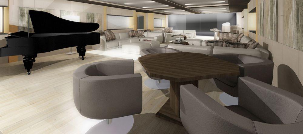 The immense space of this megayacht is the definition of luxury, and the social and private areas are proof of its status. The lavish furniture and the exquisite décor, along with the seven luxurious suites, convey a certain sense of royalty. There are 12 cabins for crew members.