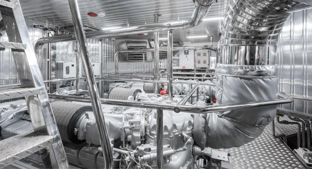 The large engine room of the 185’ Steel will house two powerful MTU 16V4000 engines, each with 1850 HP. The yacht will be able to reach a maximum speed of 15 knots and a cruising speed of 12 knots. It will be equipped with two sets of Northern Lights long-life generators (155 kW each) to supply all the power needed to operate the services and equipment on board.