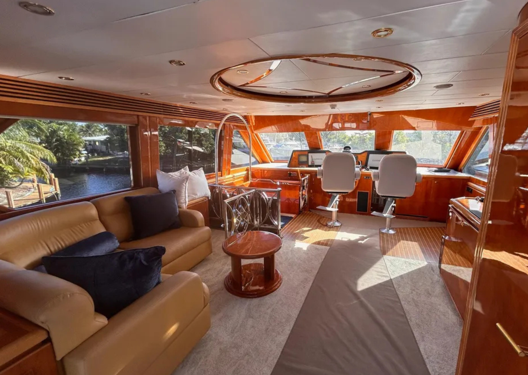 SUE CAROLYN is a truly exceptional custom built sky lounge HARGRAVE that has benefited from a recent total upgrade completed by a very knowledgeably owner and captain. She was originally built for a very discriminating owner with special needs who went to HARGRAVE YACHTS, well known for their flawless execution of customization. You and your guests will cruise in elegant luxurious stabilized comfort, especially if one or more of your party have physical mobility issues.