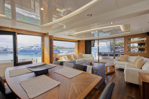 The interior is flooded with natural light, creating an airy and spacious feel throughout the yacht. Large windows and strategically placed skylights allow the beauty of the surrounding seascape to become an integral part of the onboard experience. Whether you're enjoying a meal in the dining area or lounging in the stylish common spaces, you'll always feel connected to the world outside.