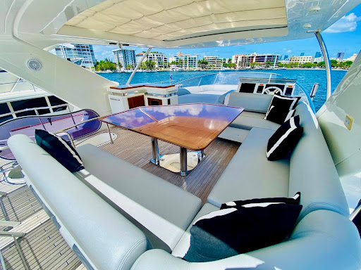 The exterior is a haven for socializing and entertaining. The Flybridge features an ice maker, BBQ, refrigerator, and sink station, making it the perfect setting for al fresco dining and enjoying the sea breeze. Revel in the panoramic views and create lasting memories surrounded by the beauty of the open waters.