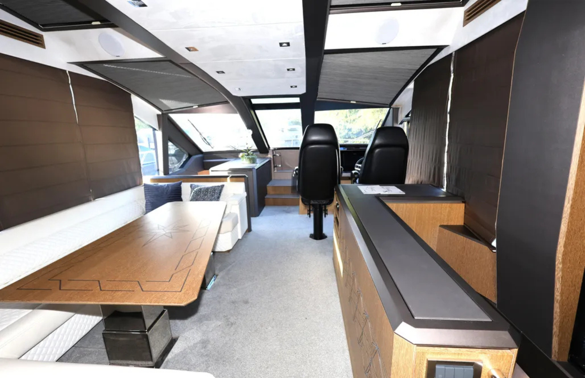 The 650 SKY is the pinnacle of design and technical prowess. Be transcended and transformed as the 650 SKY leaves you breathless as her volume belies her physical dimensions and every turn offers a game changing innovation. The carbon fiber SKYdeck roof panels eloquently disappear to reveal a large bridge while the available tender garage and rotating cockpit seat provide for endless vistas and truly unique experiences onboard. With the proportions of larger yachts designed carefully into an amazing package.