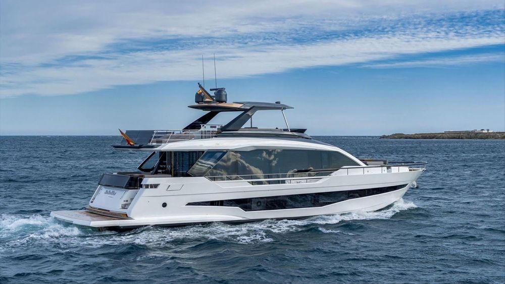 The AS8 is the crown jewel of Astondoa’s flybridge range—an 82-foot motor yacht that blends aggressive styling with massive onboard volume. Designed for serious cruising in luxury, she features expansive outdoor spaces, a stunning beach club area, and a modern interior with five spacious cabins. The AS8 offers a seamless indoor-outdoor experience with oversized windows, hydraulic swim platform, and a layout built for entertaining.
