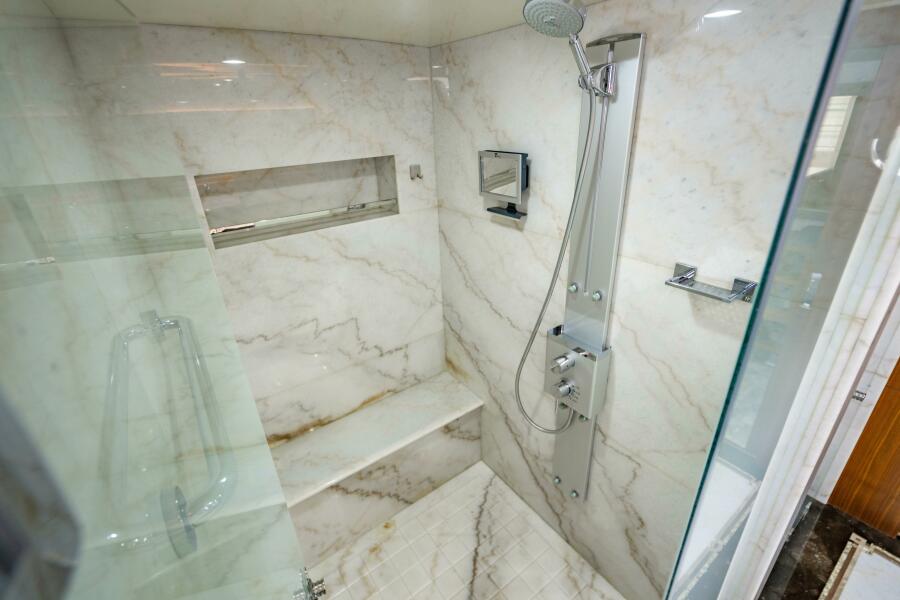 - Large marble shower w/ custom fixtures & "crystal glass" shower door