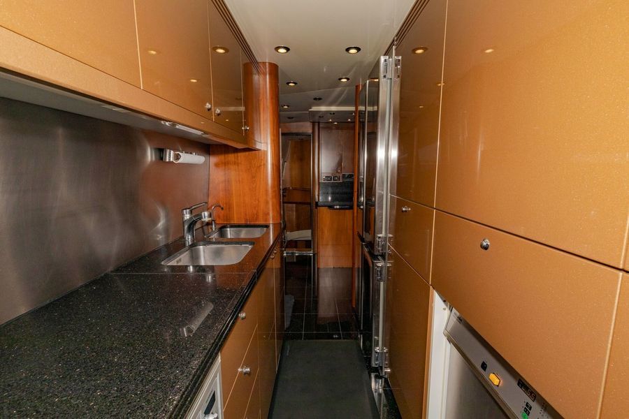KEFI is a sleek, sporty 105' Sunseeker that has been maintained meticulously by a professional crew. This Ken Freivokh designed yacht features an on deck VIP suite, a full beam Master Suite and 2 double en suites below plus accommodations for up to 5 crew. The interior is stunning with American Black Walnut joinery. She is powered with Twin MTU 16V's @2000 hp each.