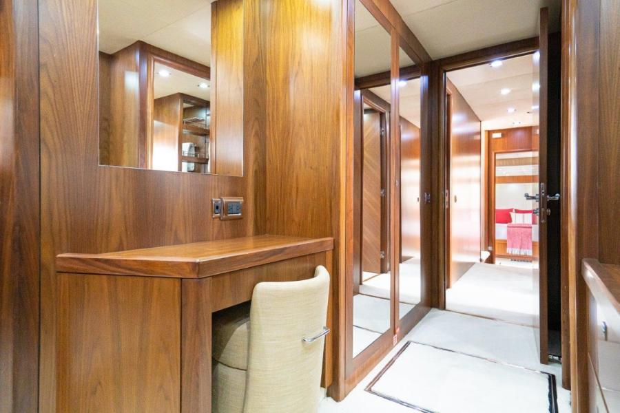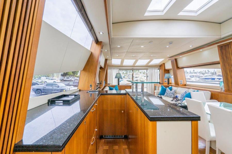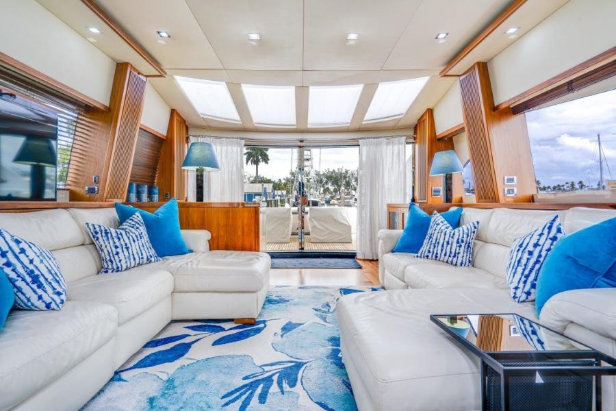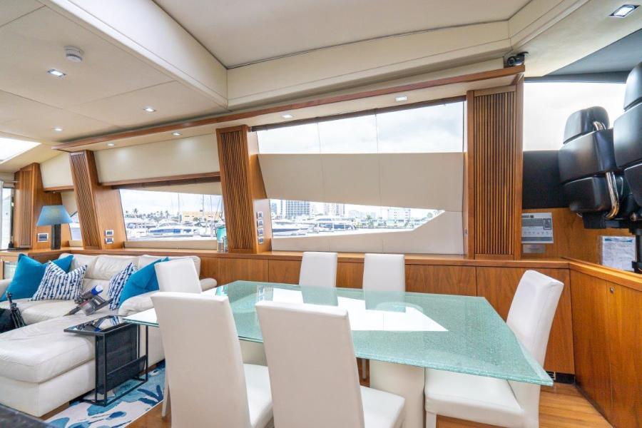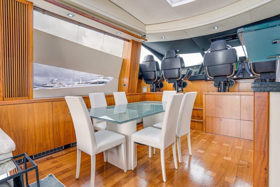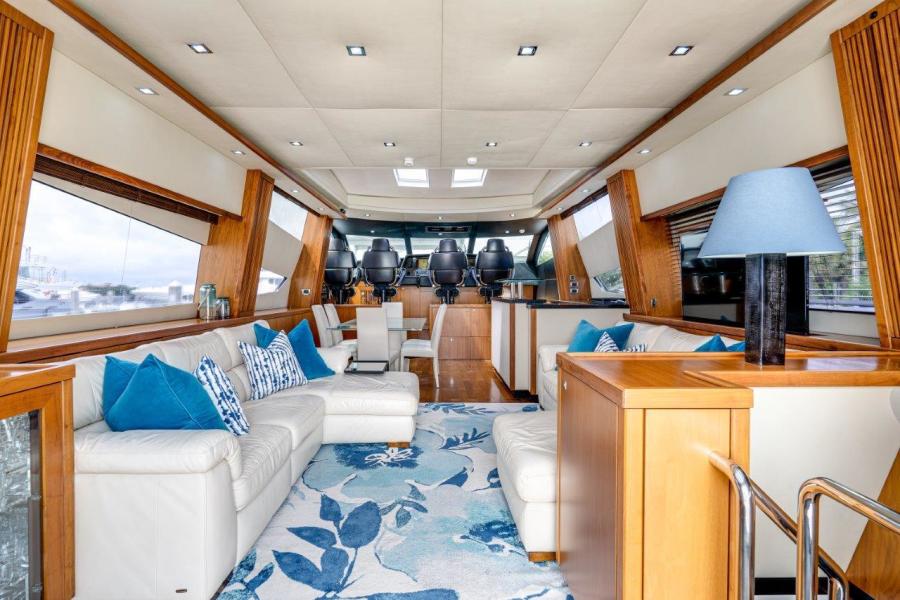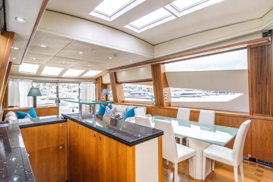 - Forward sliding doors in stainless steel and safety glass leading to deck saloon