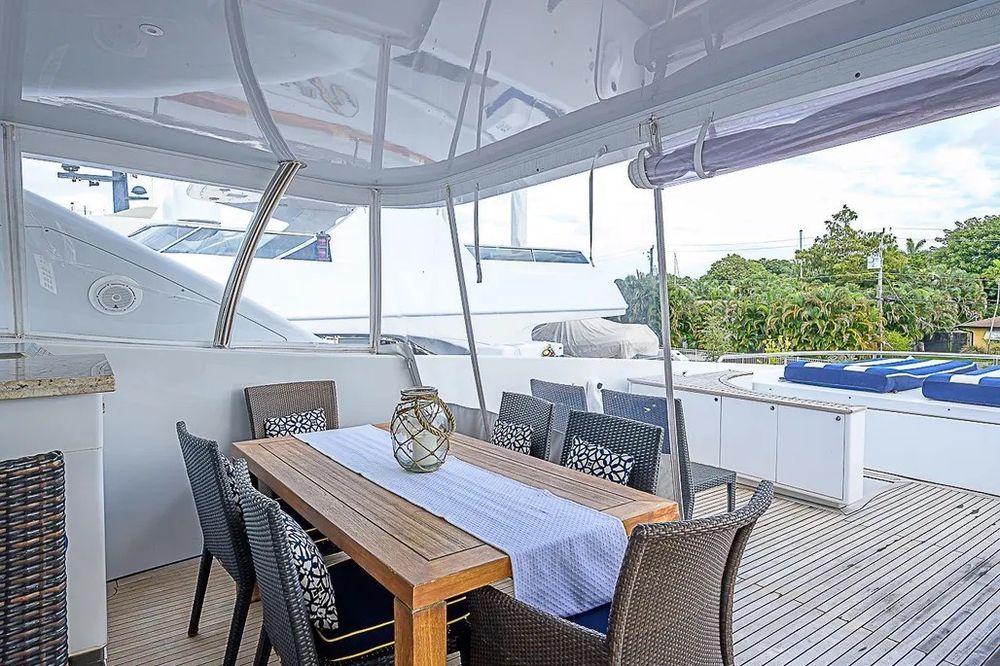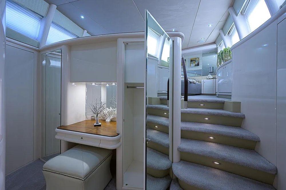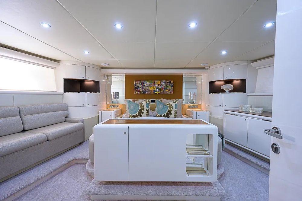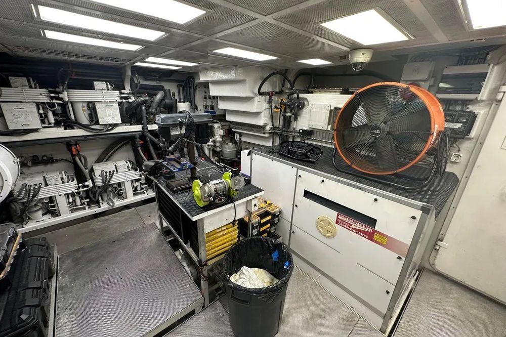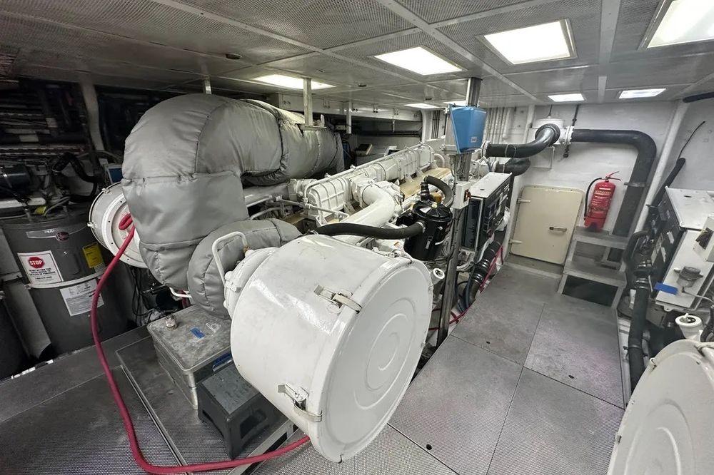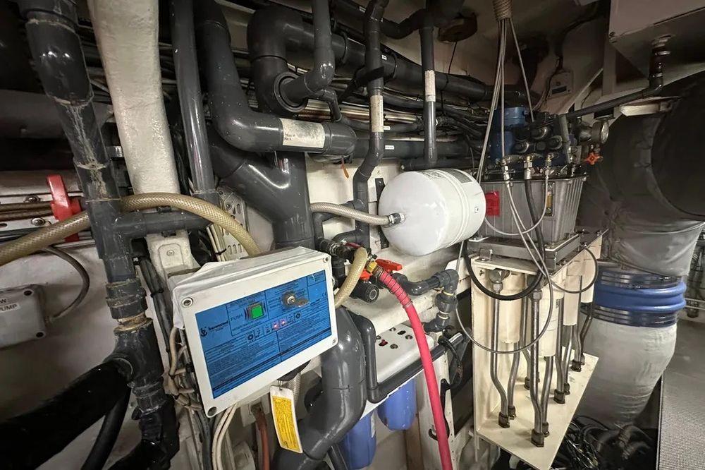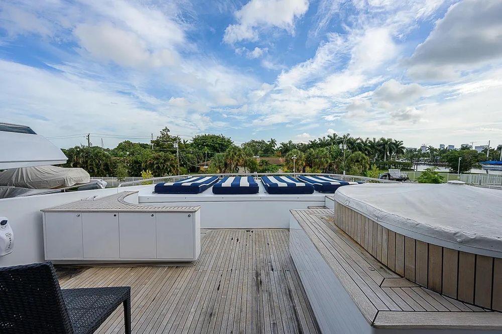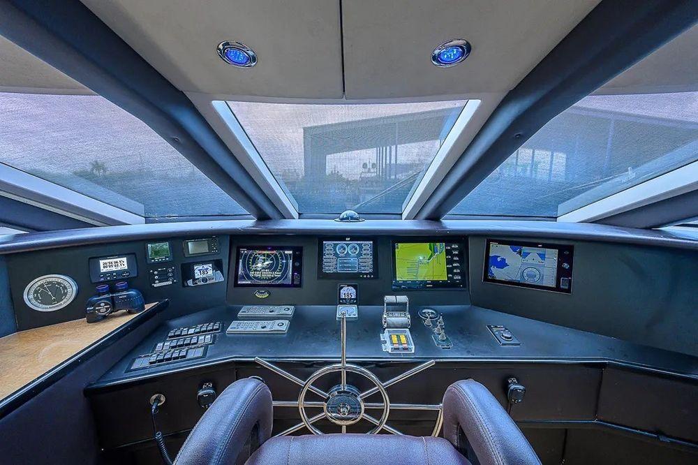 Recent service was completed at Lauderdale Marine Center 2023 Windows replaced and resealed Full hull and top side detail Bottom soda blasted Bottom faired Bottom painted coats (2) Bottom stripped and barrier coated Hydraulic system serviced Full engine service Full generator service Chillers (6) fully serviced Air handlers and distribution cleaned and sanitized Stabilizer service current Wheels reconditioned