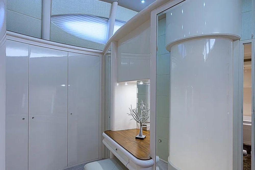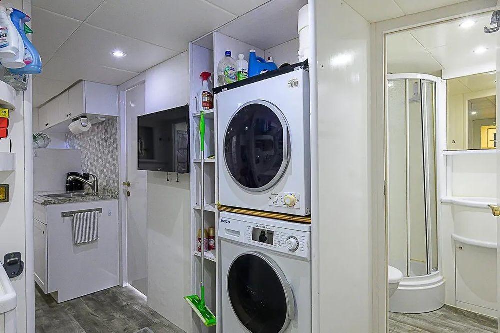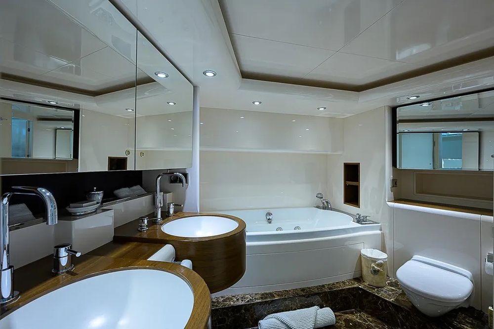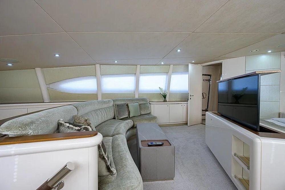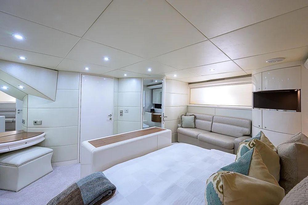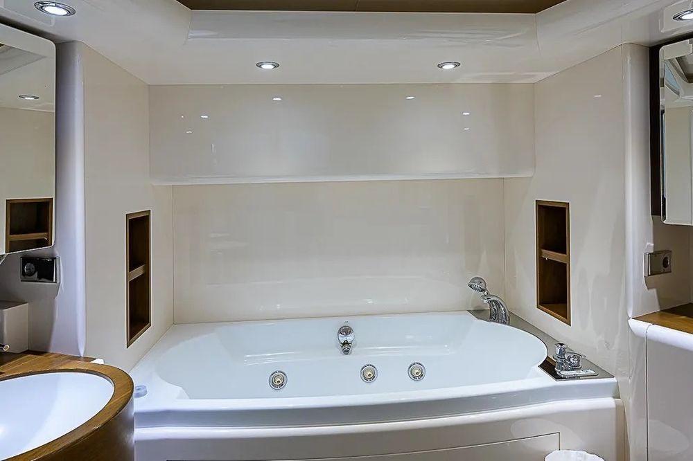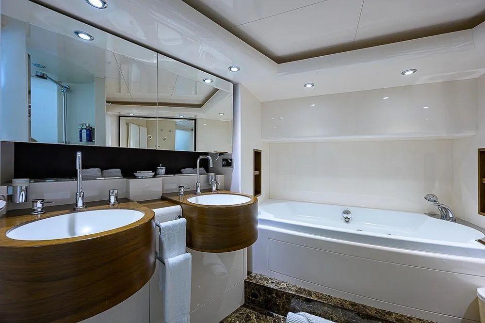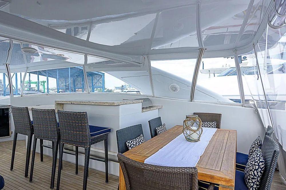Recent service was completed at Lauderdale Marine Center 2023 Windows replaced and resealed Full hull and top side detail Bottom soda blasted Bottom faired Bottom painted coats (2) Bottom stripped and barrier coated Hydraulic system serviced Full engine service Full generator service Chillers (6) fully serviced Air handlers and distribution cleaned and sanitized Stabilizer service current Wheels reconditioned