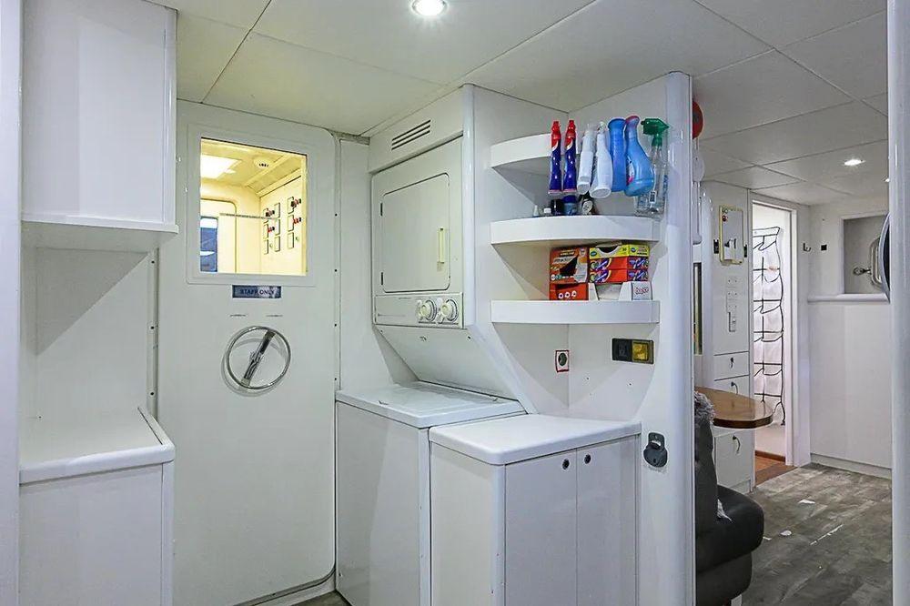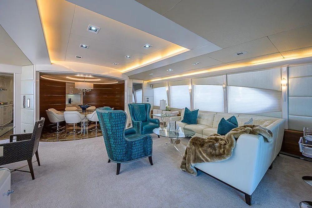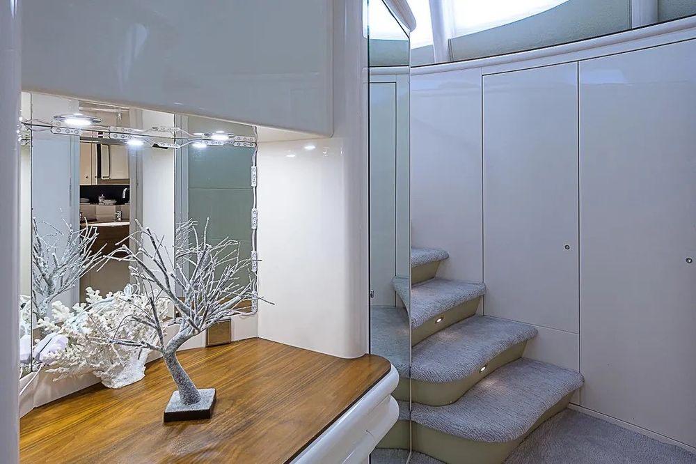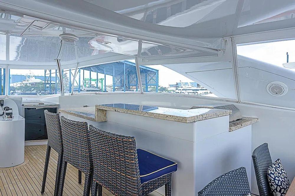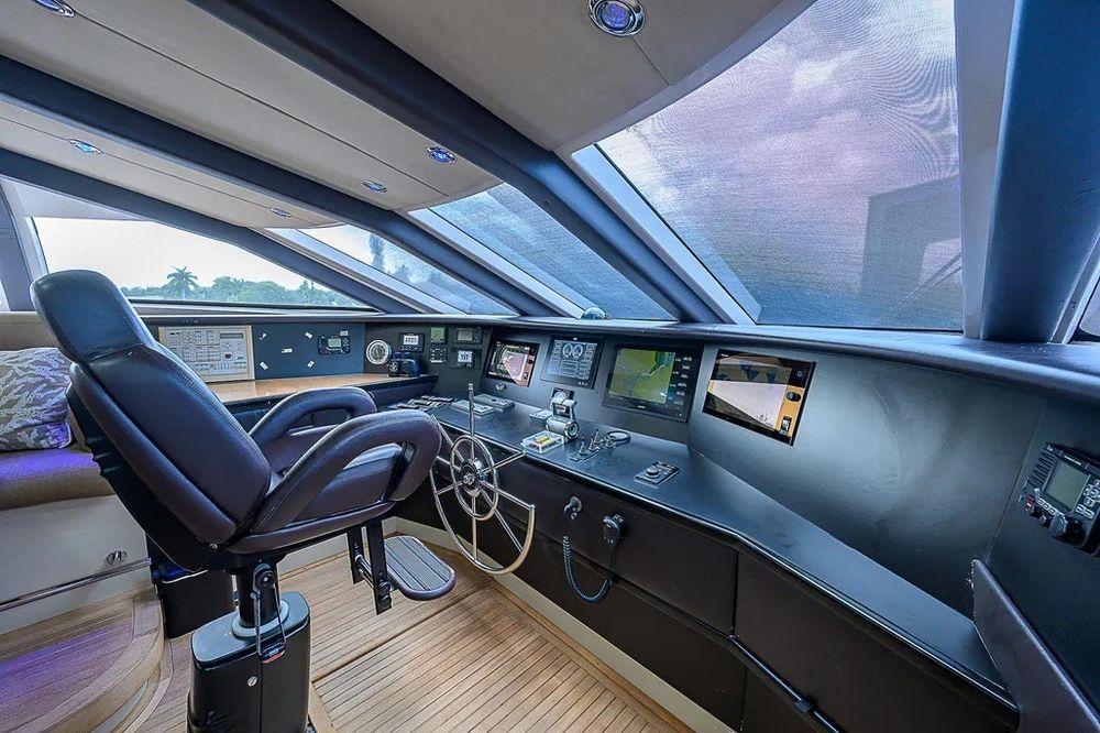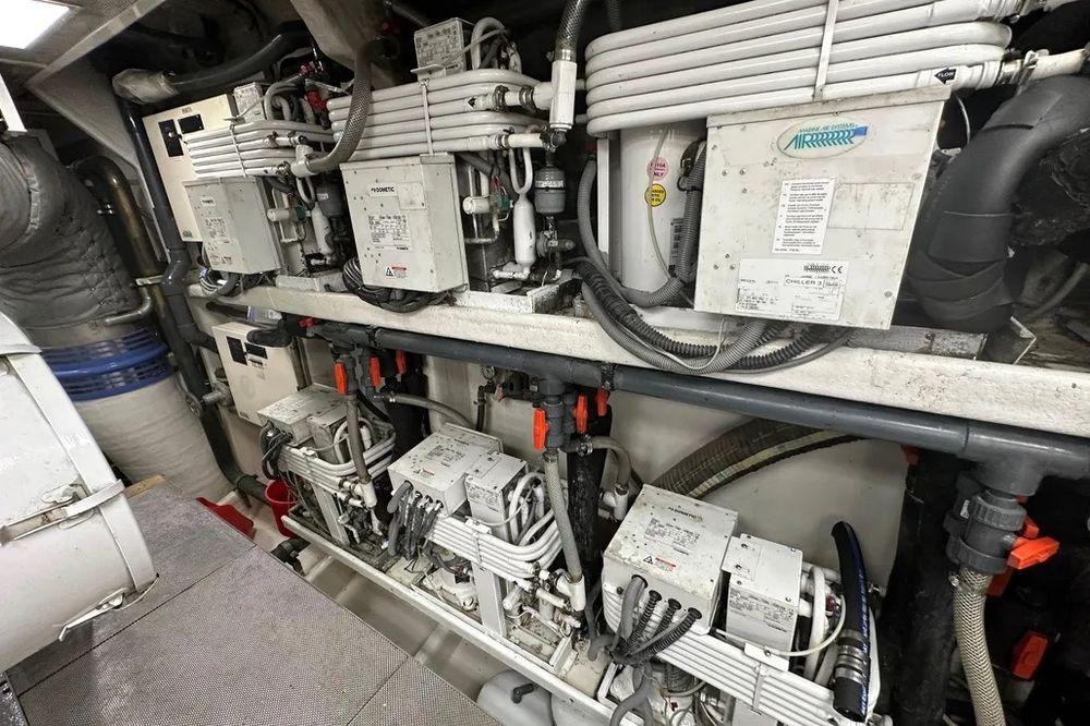 Recent service was completed at Lauderdale Marine Center 2023 Windows replaced and resealed Full hull and top side detail Bottom soda blasted Bottom faired Bottom painted coats (2) Bottom stripped and barrier coated Hydraulic system serviced Full engine service Full generator service Chillers (6) fully serviced Air handlers and distribution cleaned and sanitized Stabilizer service current Wheels reconditioned