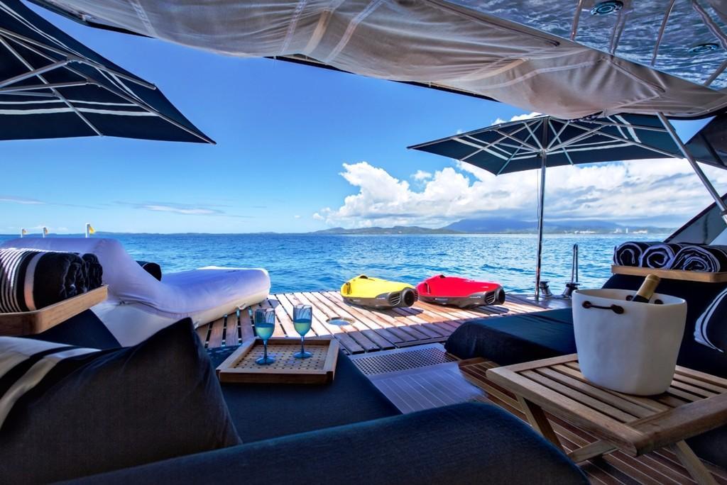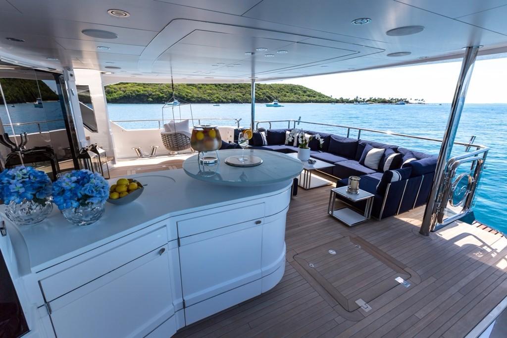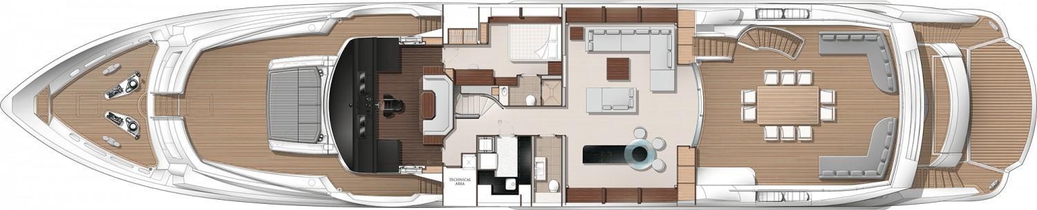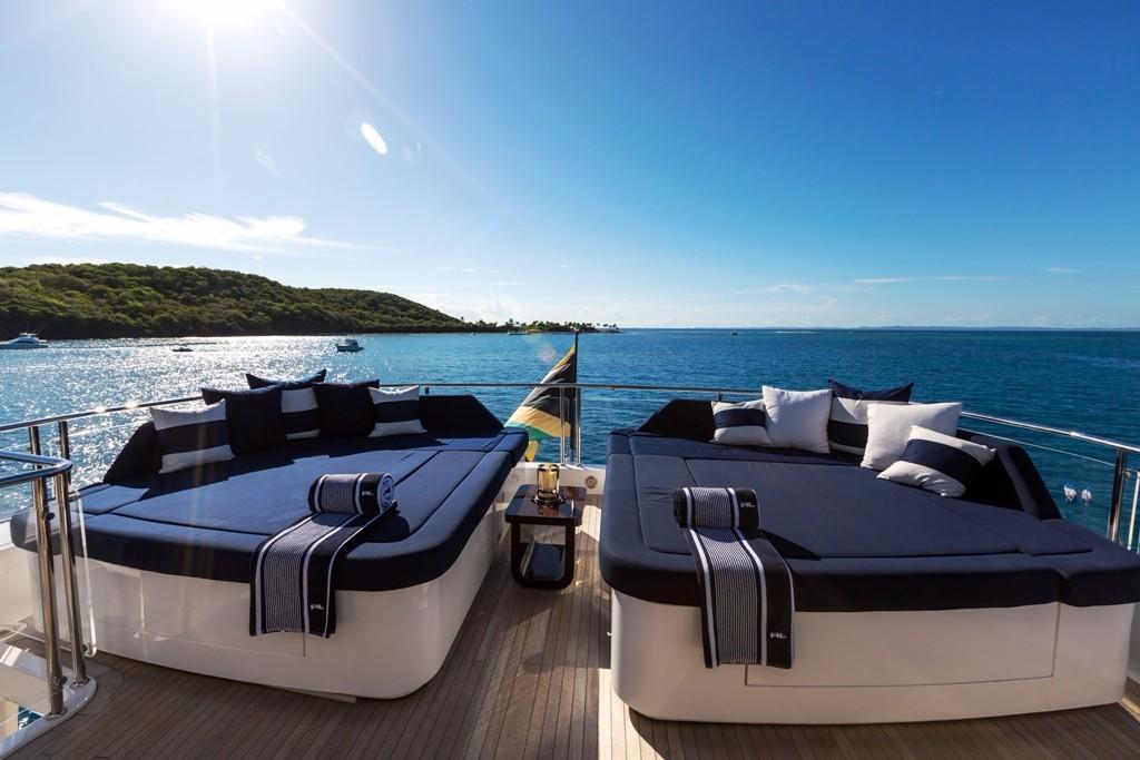 Exterior spaces provide a large variety of entertainment areas. From the sun deck with hot tub, wet bar and sun loungers to the fore deck sun pads providing an exhilarating, wind-in-your-face cruising site or quiet retreat while at dock, there's a place for everyone.