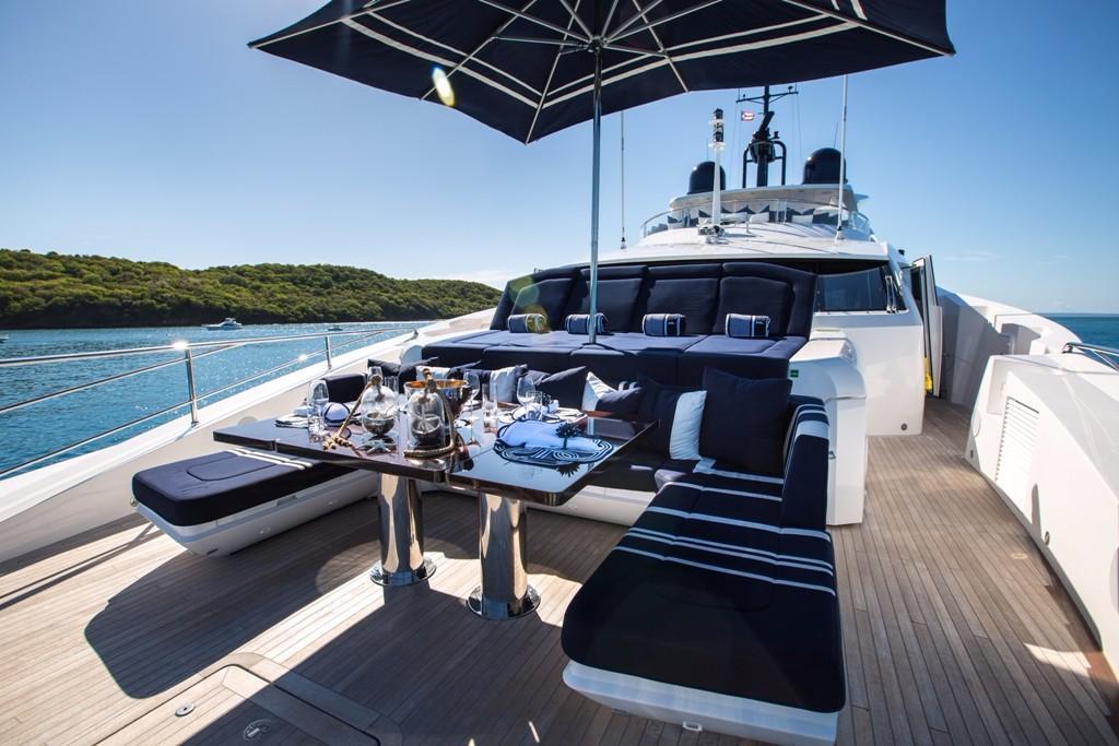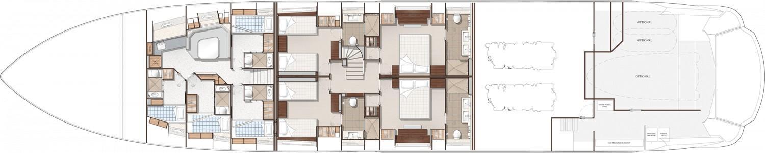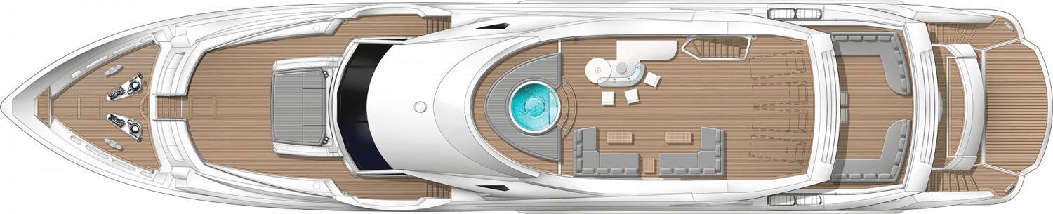 Exterior spaces provide a large variety of entertainment areas. From the sun deck with hot tub, wet bar and sun loungers to the fore deck sun pads providing an exhilarating, wind-in-your-face cruising site or quiet retreat while at dock, there's a place for everyone.