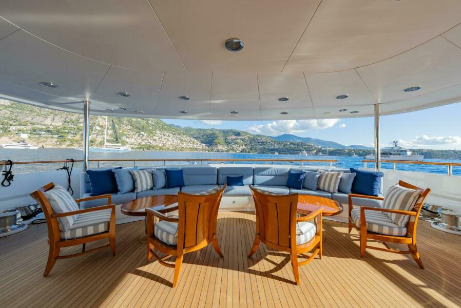 All the way forward, the jacuzzi commands a spectacular vantage point and is flanked by two private seating niches—perfect hideaways that stay connected to the energy of the deck without being exposed.