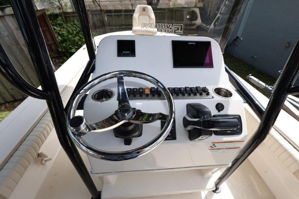The 24 Ultra Elite is not your daddy's old school, bare bones Carolina Skiff. This next generation model is a manifestation of the=is popular builders's evolution over the course of the decades, graduating to the latest high-tech materials and boat construction methods. The result of all of this is a roomy crossover boat that will be equally at home performing family duties as she will taking a crew of hardcore anglers out for rod-bending action in the back bay, inlet, inshore or offshore fishing grounds.