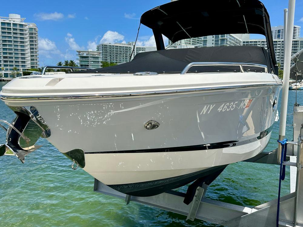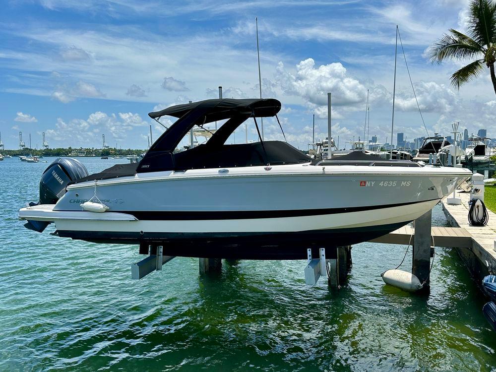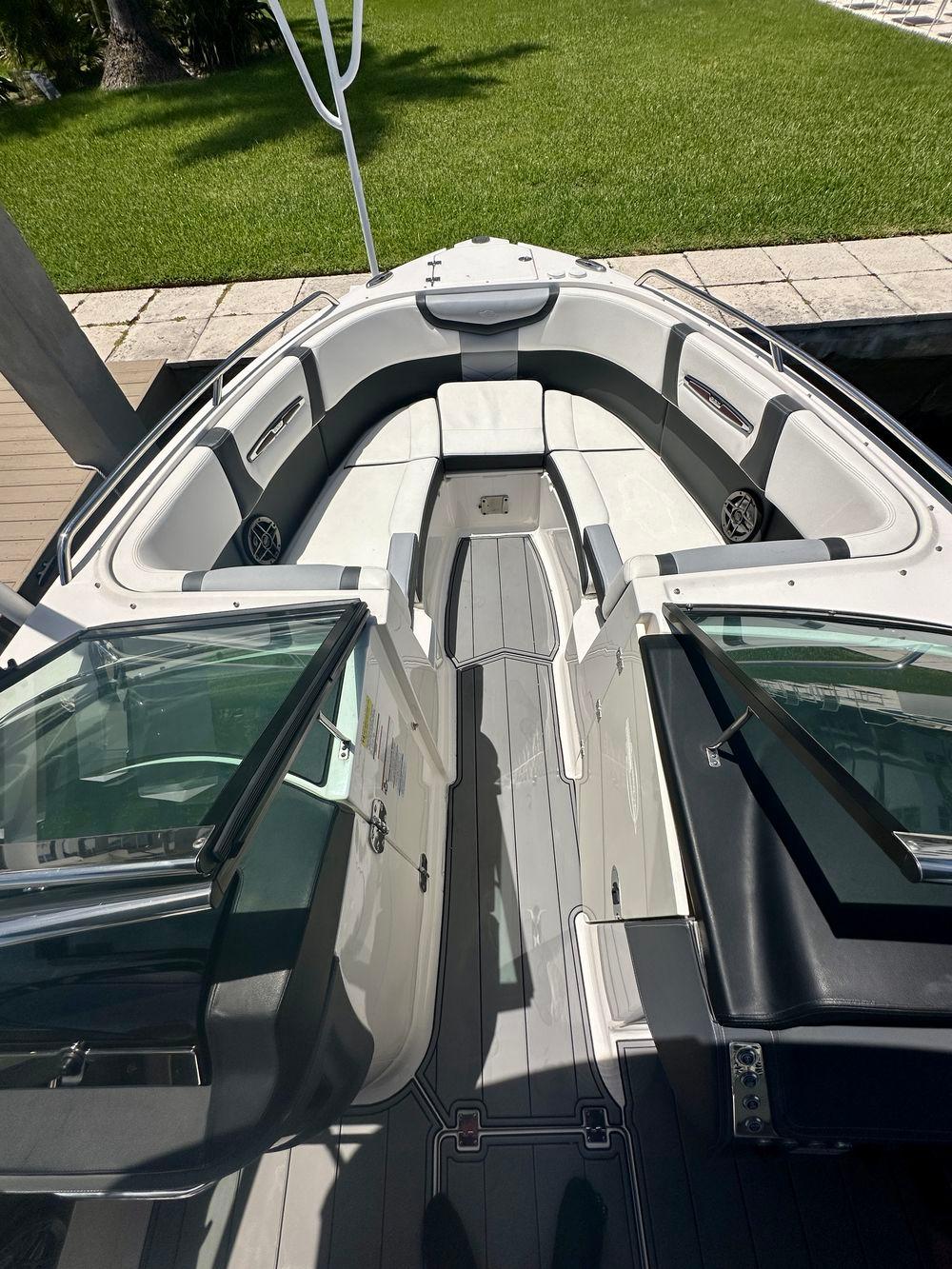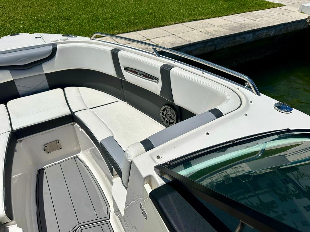The 267 SSX Outboard is a trendsetter in design, performance, and function. The helm features an all new glass dash with dual touch screen displays. The cockpit is open, spacious and features a multi-position sun lounger aft. The open concept design carries forward into the bow area which features hinged storage beneath luxuriously appointed upholstery. Chaparral went to great lengths to create a powerful and agile craft that glides through the water with minimal noise. The 267 SSX Outboard was designed with the most advanced technology afloat today. With Dual Simrad 7" touch screen displays and Simard controls, is NMEA compatible and offers navigation, engine management, full gauge compliment, and can be customized to your personal preferences.
