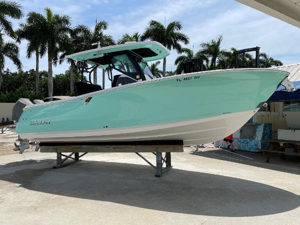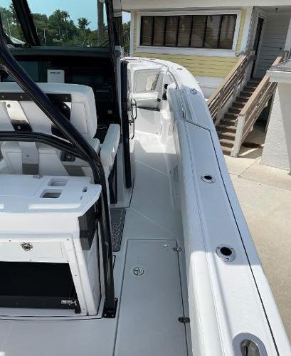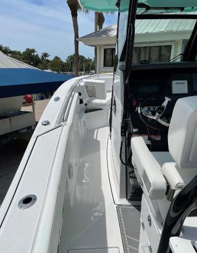The 272 CC is a battlewagon of a ship, with built in finesse. Prepared to take on the toughest seas, but with elegance that will slice through any shred of wave that is in front of it. All while still capturing the creature comforts for any ride you wish to take it on. Let it be to the far to reach fishing grounds, sand bar hopping or to the local tiki bar. The large freeboard, flip-down transom seating and massive center console to name a few will do the job.
