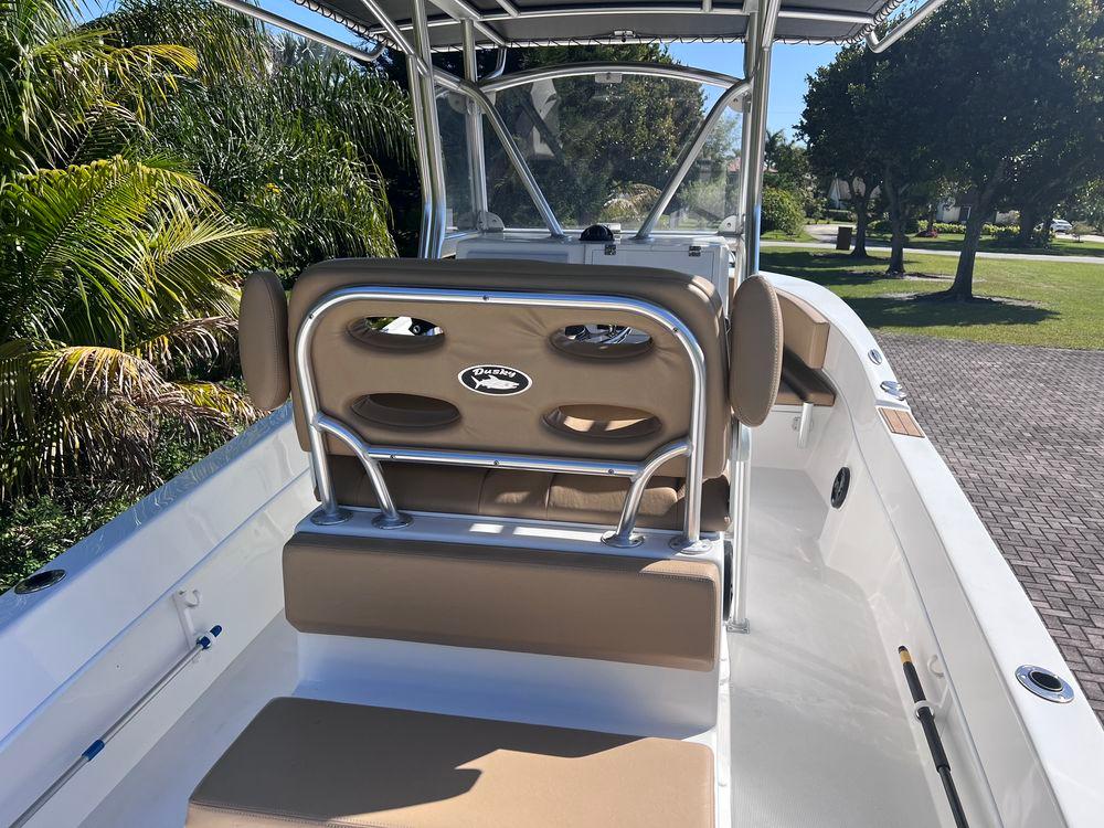 Introducing the 2022 Dusky 278 Center Console, powered by twin Suzuki Outboards at 225 hp each, complete with a Continental Trailer. Recently serviced with 100 hours logged, this boat comes with a certificate of title. Featuring the Y Package, including tan cushions, a bow table, and chairs, as well as additional amenities such as a windlass anchor, Cobra MR F57W Marine Radio, and Infinity PRV415 Bluetooth Stereo. Equipped with model engines Suzuki DF225s, an Audiopipe amp with JBL Lighted Speakers, underwater stern lights, and a Simrad NSSEVO3S Navigation system with depth finder and fish finder functionality. Additional features include a salt and freshwater wash system, insulated fish box, and livewell for optimal fishing experiences.