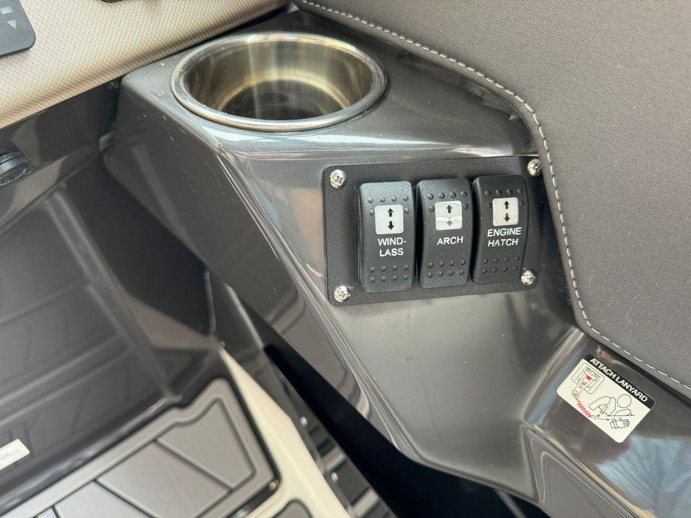 Compass Depthsounder w/Shallow Water Alarm Instrumentation w/Fog Resistant Gauges & Low Glare Night Lighting MP3 Adapter Outlet, 12V Steering Wheel, Leather Wrapped w/Chromed Stainless Spokes Steering, Power Assisted Steering, Tilt Switches, Lighted Weatherproof