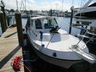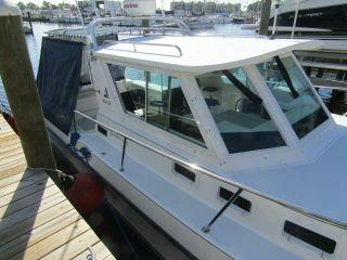 The Albin 28 delivers award-winning performance that is ready for any kind of seas. With almost 1,000 hulls produced, the Albin 28TE has a great reputation for high quality, outstanding handling characteristics, economical diesel performance, and comfort for cruising or fishing. The pilot house boasts a full hard top and windshield that is perfect for year round use. The hard top has a foldable extension that will provide shade for the entire cockpit or if you are fishing for the big one, it folds out of the way. This is a boat that will work as a small cruiser, commuter, or as an extended range fishing machine. There is potential sleeping accommodations for four and an enclosed head below. The single Yanmar 330 hp diesel provides efficient and reliable power with easy cruising up to about 16 to 19 knots and a top speed of 23 knots. Having a propeller and shaft versus a drive leg increases reliability and reduces maintenance costs.