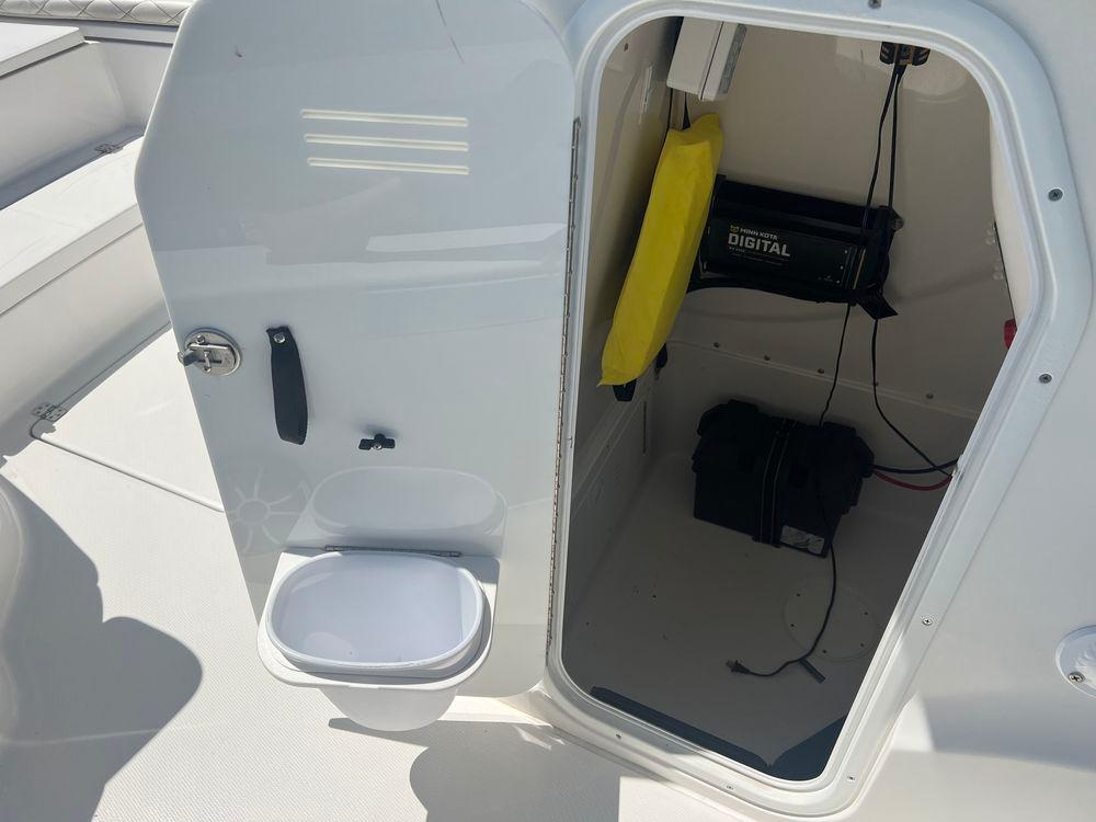 The double stepped hull design insures that performance and fuel economy are kept at the highest of standards while maintaining the ultimate in ride quality and precision maneuverability. Inside the 2800 Pure Hybrid you will find multiple storage boxes that are not only insulated but also drain directly overboard including a 500 Quart fish box with macerator pump. This means the catch of the day will stay fresh and allow for easy cleanup.