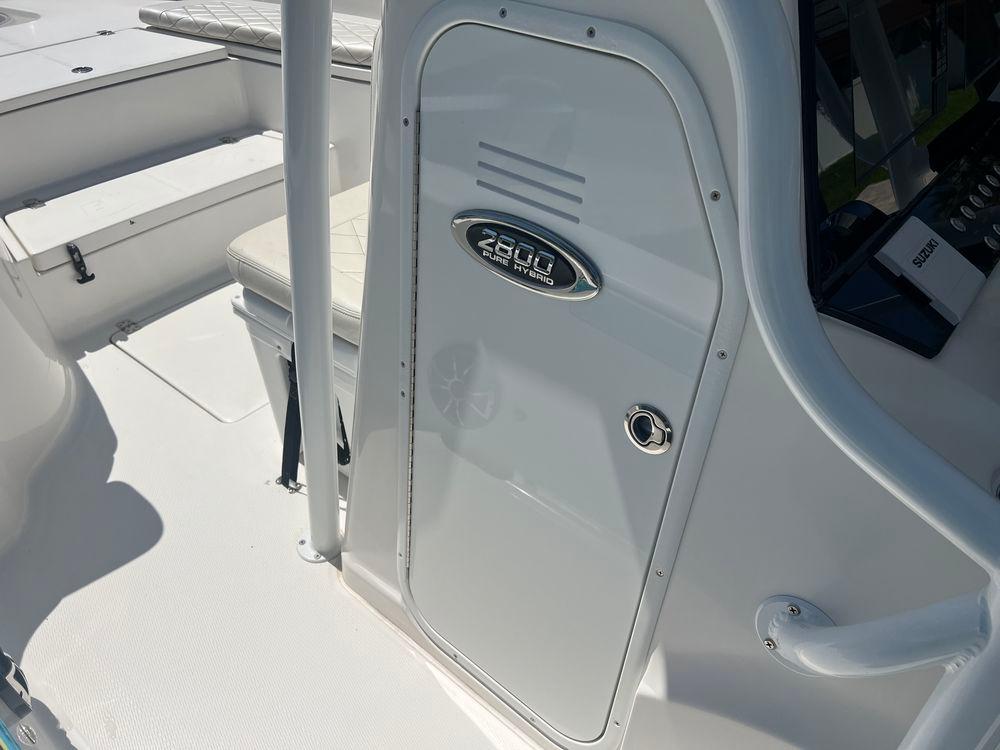 Your crew will cruise in comfort with features such as a console designed to step down inside allowing enough room for a porta potti, optional bow seating with removable back rest, an aft deck flip up seat and walk around gunnels. Some of the features that make the 2800 Pure Hybrid the smartest in its class are fuel fills on both port and starboard sides, a large wet storage area for cast nets and bait buckets along with easy battery access.