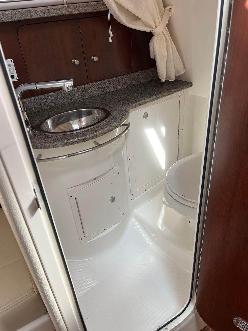 - Enclosed Head Compartment with VacuFlush Porcelain Marine Head with 12 Gallon Holding Tank