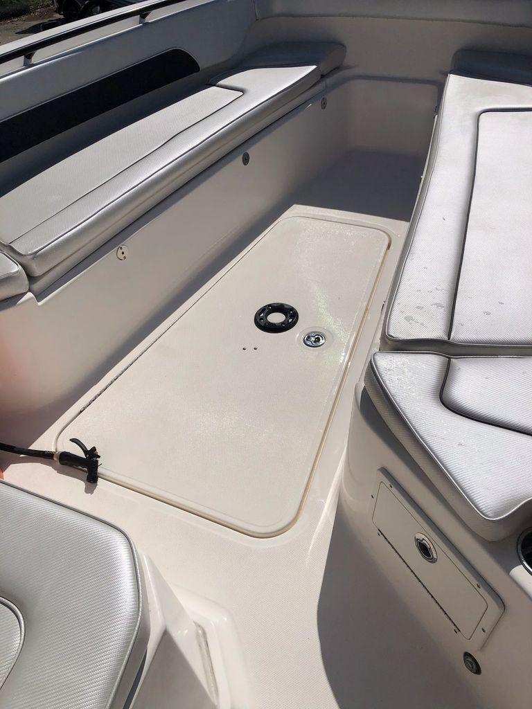 Set yourself up with this American icon: the Scarab Tournament from Wellcraft is ready for fishing excellence. From the T-top – equipped with gold-tone rod holders, two spreader lights, an electronics box, and PFD storage – to the transom rigging station, this vessel is quality from bow to stern and starboard to port. The head compartment and the cockpit are loaded with storage areas so you can keep things ship-shape; add the optional baitstation with Kodiak baitwell and the Raymarine Electronics package and you’ll take the sport up a notch.