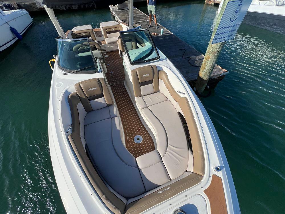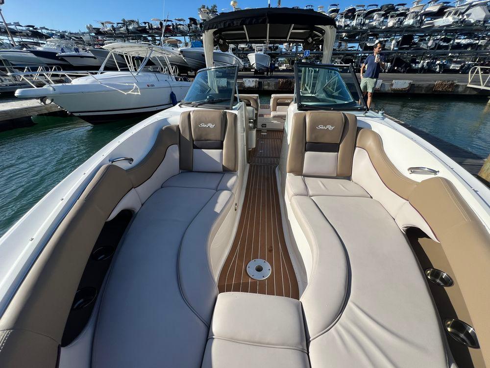 The 2012 Sea Ray 300 SLX is a luxurious and powerful sport boat that promises an exhilarating on-water experience. This model boasts a sleek and stylish design, offering both performance and comfort for boating enthusiasts. Equipped with two Mercruiser engines, each boasting 350 horsepower, this vessel ensures a thrilling ride with impressive speed and responsiveness. With only 550 hours on the engines, this Sea Ray 300 SLX is well-maintained and ready to conquer the water. The spacious and well-appointed cockpit provides ample seating for passengers, while the well-designed helm ensures easy navigation and control. Whether you're into watersports or simply cruising in style, this Sea Ray 300 SLX from 2012 offers a perfect blend of performance and elegance for an unforgettable boating experience.