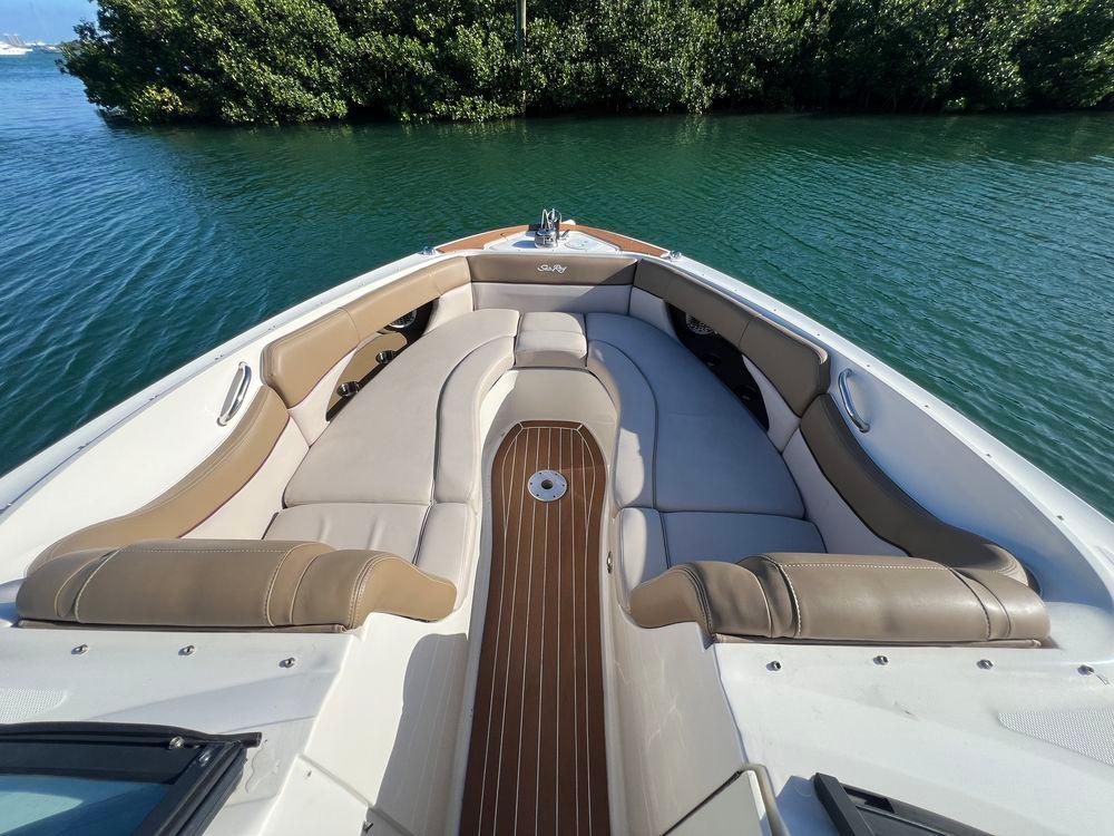 The 2012 Sea Ray 300 SLX is a luxurious and powerful sport boat that promises an exhilarating on-water experience. This model boasts a sleek and stylish design, offering both performance and comfort for boating enthusiasts. Equipped with two Mercruiser engines, each boasting 350 horsepower, this vessel ensures a thrilling ride with impressive speed and responsiveness. With only 550 hours on the engines, this Sea Ray 300 SLX is well-maintained and ready to conquer the water. The spacious and well-appointed cockpit provides ample seating for passengers, while the well-designed helm ensures easy navigation and control. Whether you're into watersports or simply cruising in style, this Sea Ray 300 SLX from 2012 offers a perfect blend of performance and elegance for an unforgettable boating experience.