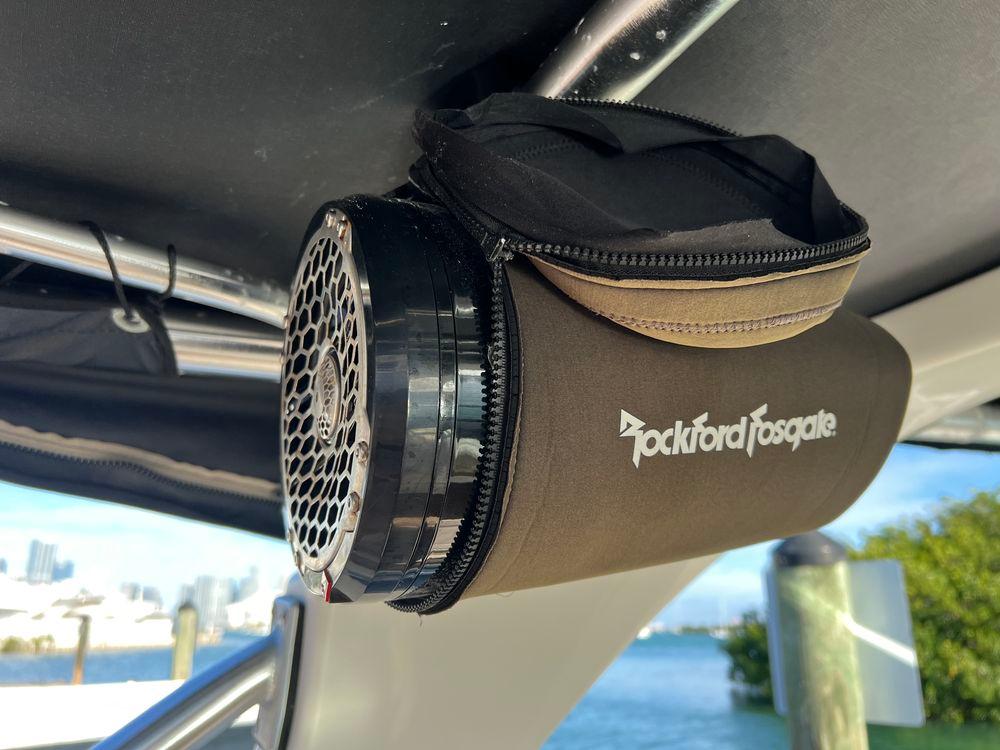 - 12V Sony AM/FM single CD stereo with amplifier, six speakers, digital cockpit remote control, and iPod connector.