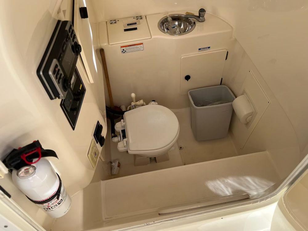 Presenting the versatile 2009 31' Pursuit S-310, a rugged offshore performer designed to conquer rough waters and high seas. Above deck, it showcases refined features, including an extended hardtop providing weather protection from the forward console seat to well aft of the helm. The bow seating area offers both comfort and functionality with recessed rails for security and ample storage beneath the benches. Enjoy sunbathing with the optional bow filler cushion or transform the area into a spacious dinette with the removable teak tabletop for waterfront dining. Inside the console, discover a convenient stand-up head compartment with locking storage for valuables. The stern seating arrangement features forward and aft-facing benches, ideal for casual conversations or fishing adventures. Additional amenities include a spacious insulated cooler concealed beneath the forward-facing seat and a stainless steel refrigerator tucked beneath the helm seating. Whether cruising or angling, the Pursuit S-310 delivers unparalleled comfort and performance for all your on-water pursuits.