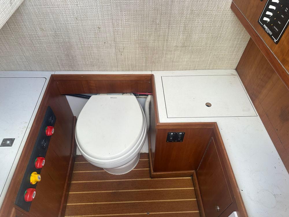 223 gallon fuel tank with fuel/water, Separating filters, 23 gallons fresh water, Tank with pressurized water system, Bronze sea strainers and cut off valves on all thru hulls, Electric toilet system with holding tank and pump out system, EPA fuel spill protection, Automatic 2000 gph bilge pumps (2 aft, 1 midship), Power steering, Ritchie compass, Trim tabs