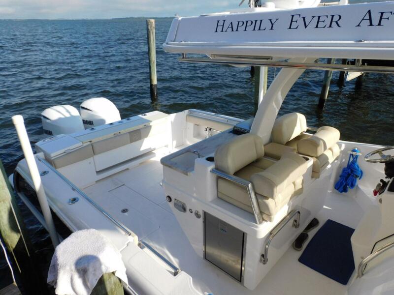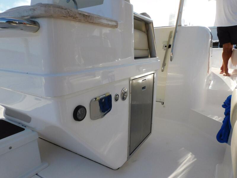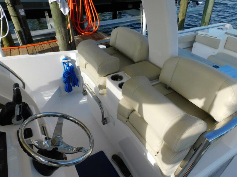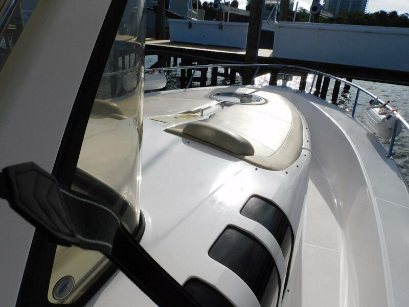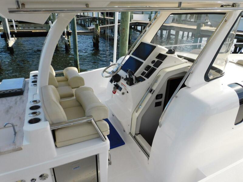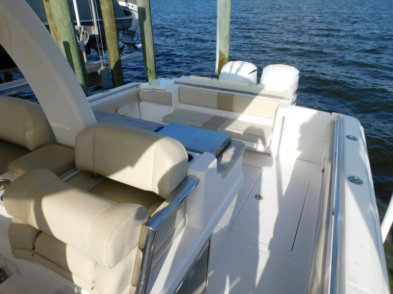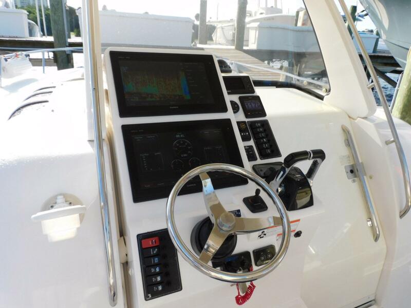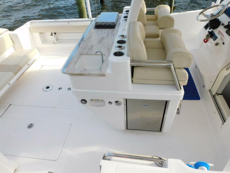 This boat is in great condition and truly a turn key vessel. They set out to design an uncompromising cabin that doesn't sacrifice on-deck walk-ability. What they ended up with was a 327 boat with the feel of a center console, but with a cabin that keeps your family cool on a hot day or ready for an impromptu overnight stay. Its flexible design is complemented by remarkable offshore handling, making for an incredibly versatile vessel.