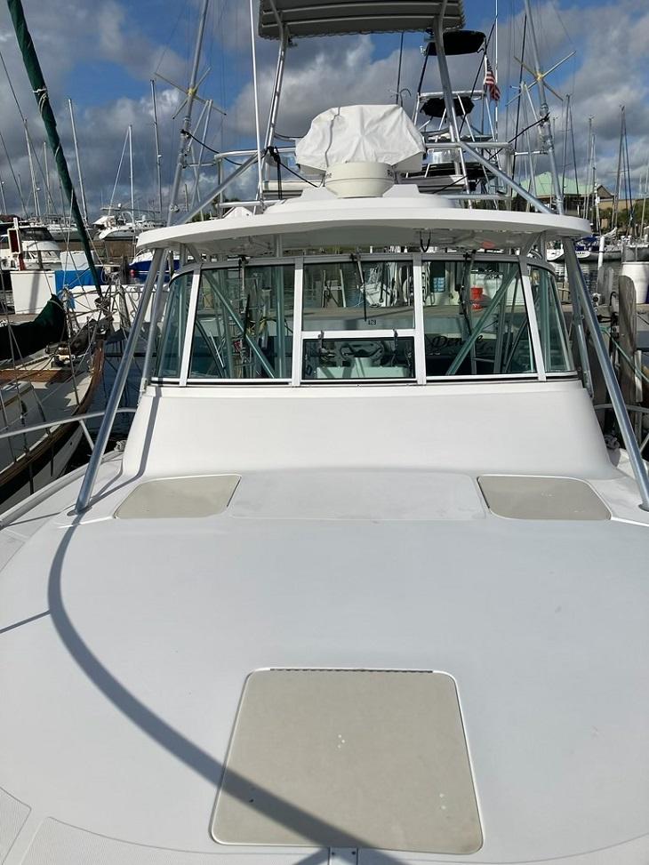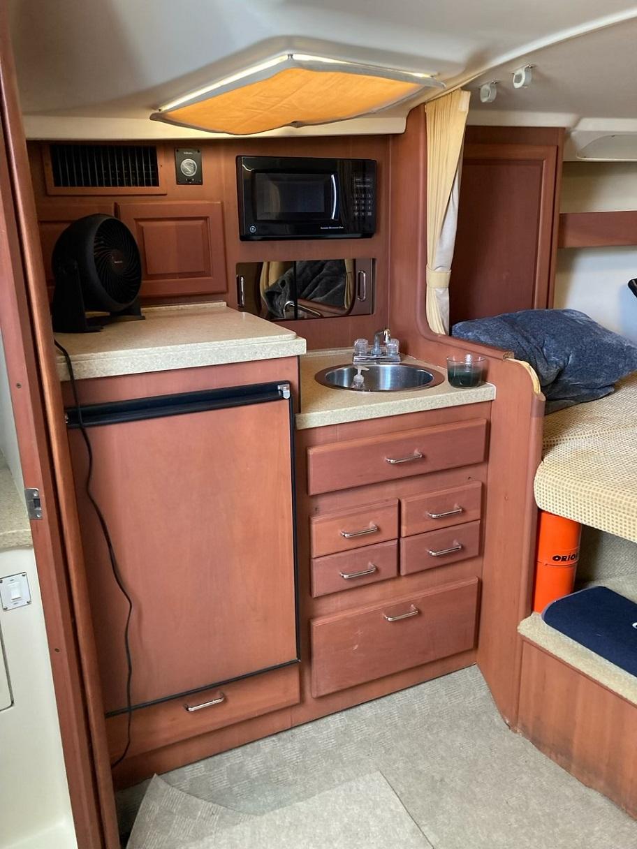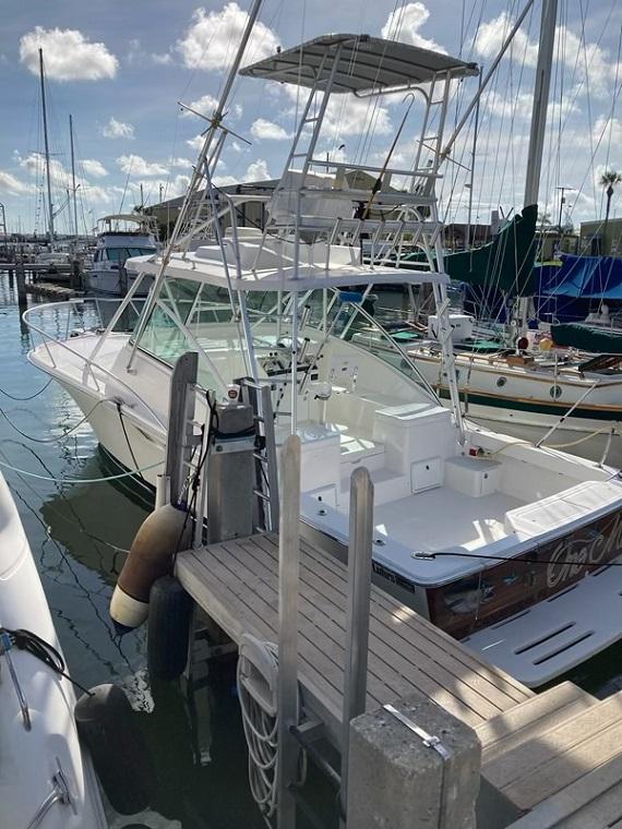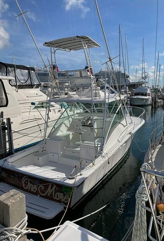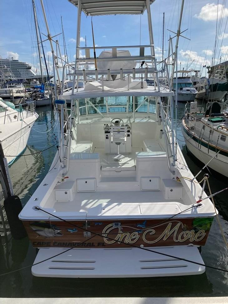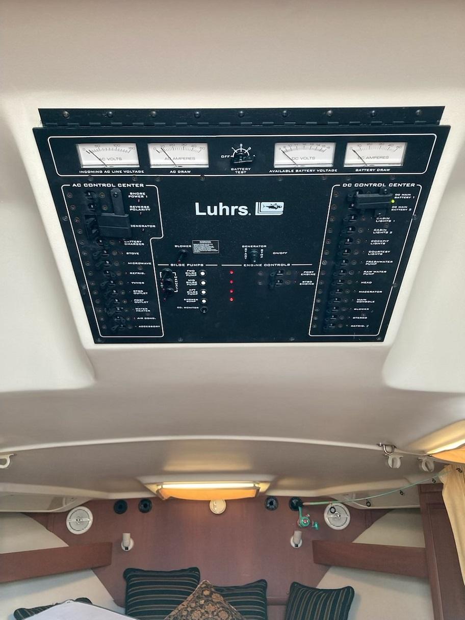The Luhrs 32 Open has a deep forefoot and a Carolina flair to bust up the head seas while still keeping passengers dry and comfortable on those long treks offshore. The modified V-hull runs true in all conditions and is stable in the troughs. A true center console, the 32 makes shorthanded fishing a snap. Access to the cockpit is safe and quick while visibility is excellent on all points. An optional windshield can even make the season last a bit longer. There is plenty of space for all electronic needs, and storage for PFD1s, tools, and tackle are plentiful on the bridgedeck. The 32 Open comes complete with a custom fiberglass hardtop, an easy-access fishtower with extra-wide seating, and full instrumentation. A three-sided enclosure is also included to increase comfort. Everything from the tackle drawers to the transom door are standard on Luhrs. Features like the livewell, dual washdowns, rod holders, bait prep centers, and even a coaming fishbox are also standard. The interior of the 32 Open features rich fabrics and fine hard woods accented by durable, yet beautiful Corian and plush carpeting. The forward V-berth doubles as a dinette and the starboard settee flips up and slides out to offer a double berth below with a single above. Galley accommodations include a two-burner range, dual-voltage refrigerator / freezer, and microwave. The full-fiberglass head with shower is large and easy to maintain with a Corian counter and plenty of storage.