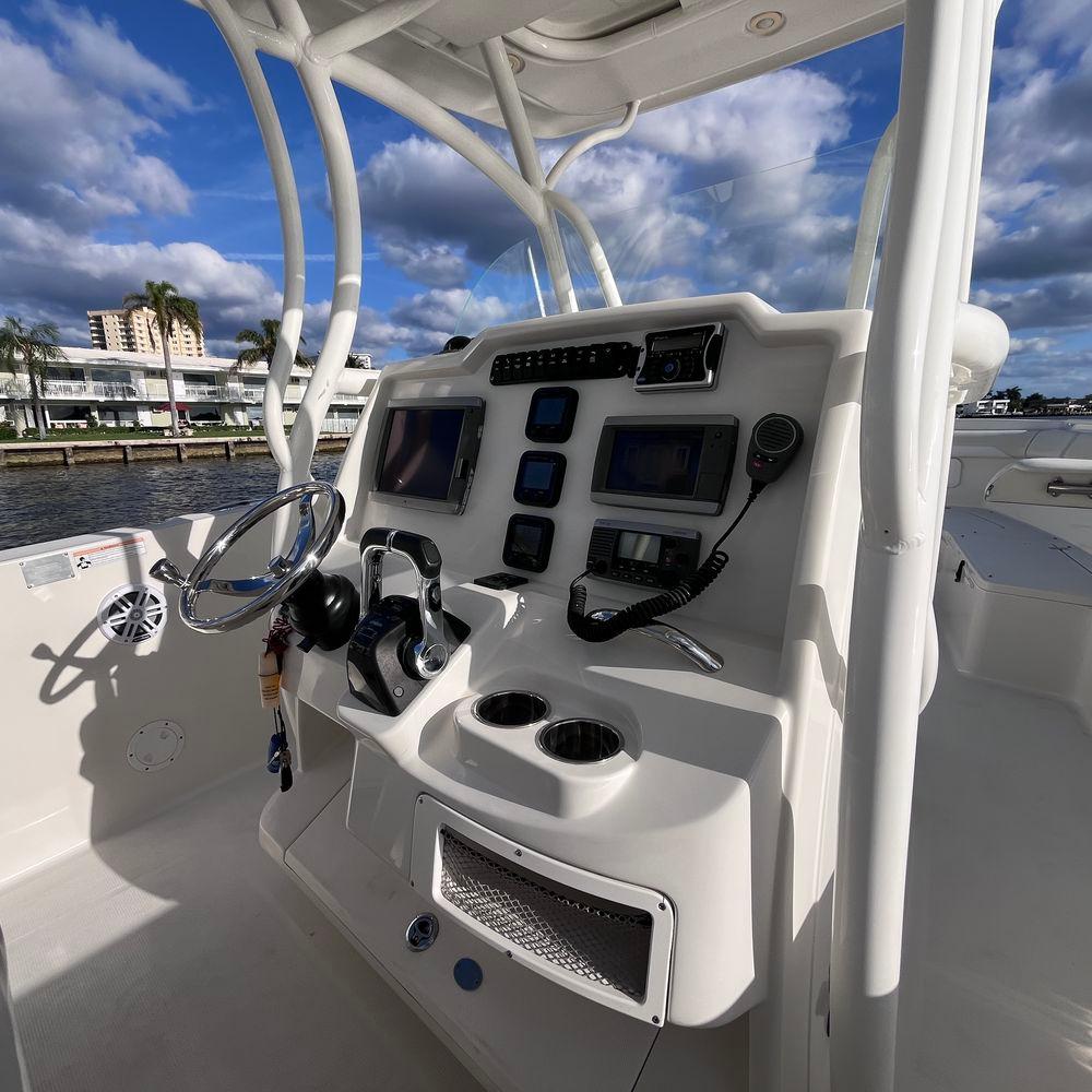 This 2014 Sailfish 320 Center Console is in great overall condition, and shows very well for a 2014. She is powered by a pair of low hour 300hp Yamaha outboards. Recently detailed, and serviced this boat is ready for its new home. Don’t miss your chance to own a turn-key center console before summer !