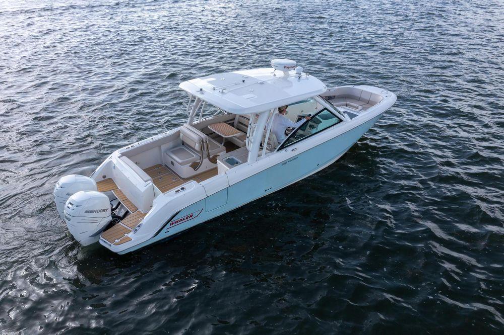 Cutting-edge features, great capacity and easy adaptability are hallmarks of the dual-console 320 Vantage®, winner of the National Marine Manufacturers Association’s 2015 Innovation Award. Rock-solid control meets the ultimate in versatility and comfort with the many accessories and options the 320 provides. Serious fishing, joyful entertaining, day-long watersports or cruising and even a place to sneak in a nap or an overnight stay–the 320 is ready for your day. When the softest, safest ride meets the best equipped dual-console around, new possibilities become eminently possible. With Whaler, you can be confident to the core.