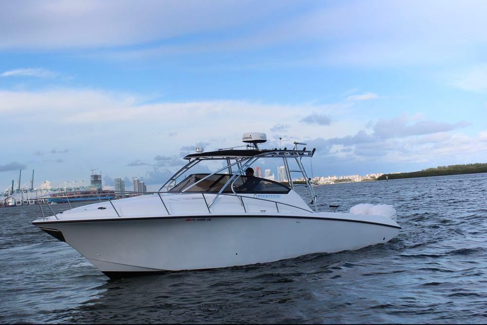 Take command of the Fountain 33 SFC with its center helm console, which provides a great view of your course, your wake, your cockpit, and your crew. The 33 SFC cockpit is arranged for serious fishing with lockable under-gunwale rod stowage able to stow a pair of 50s per side. The transom livewell is also smart, the lid has a small hatch to keep water from sloshing out, but the lid can also be removed entirely if you want to use the livewell as a fishbox if needed. There are also two massive, macerated fish that boxes reside in the sole. A rigging station is on the transom and at the cockpit’s forward end is another livewell and a tackle storage unit. These modules are the perfect height for crew to sit on and watch strikes.