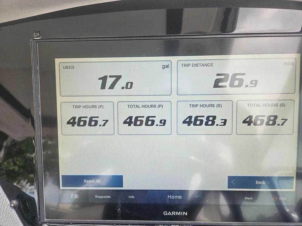 - Garmin screen with charts, sonar, engines and stereo loaded in.