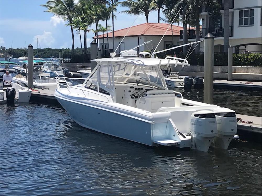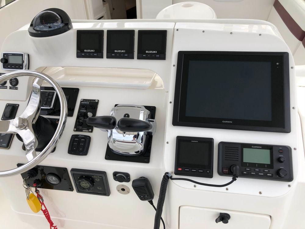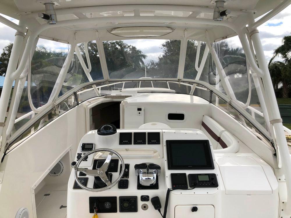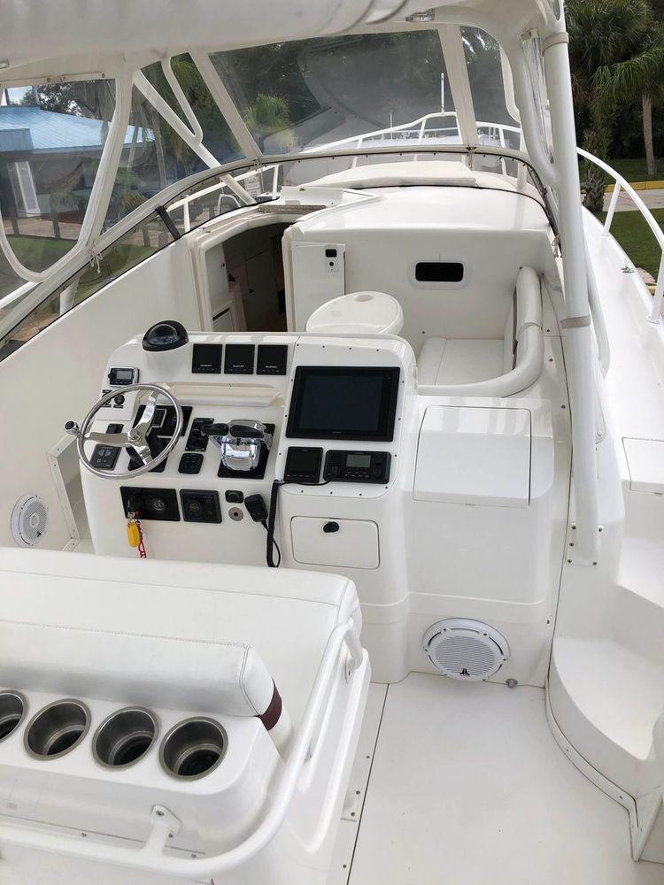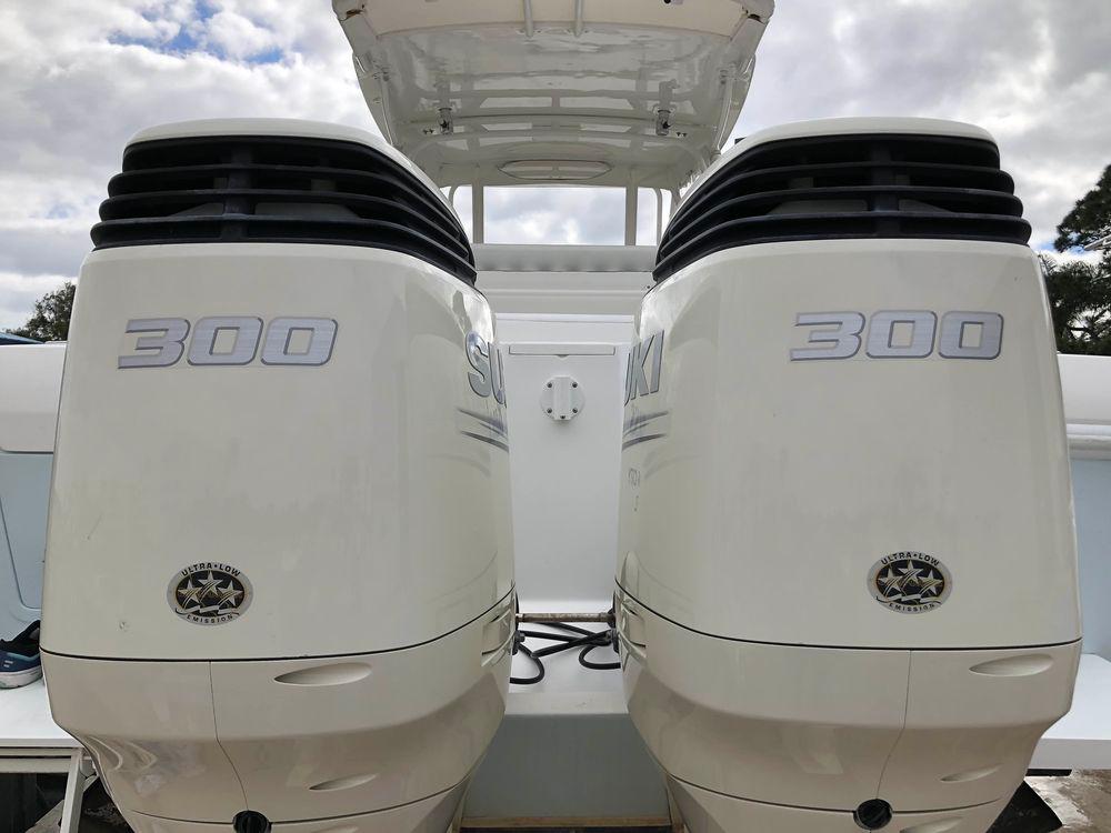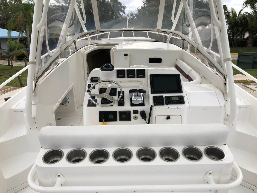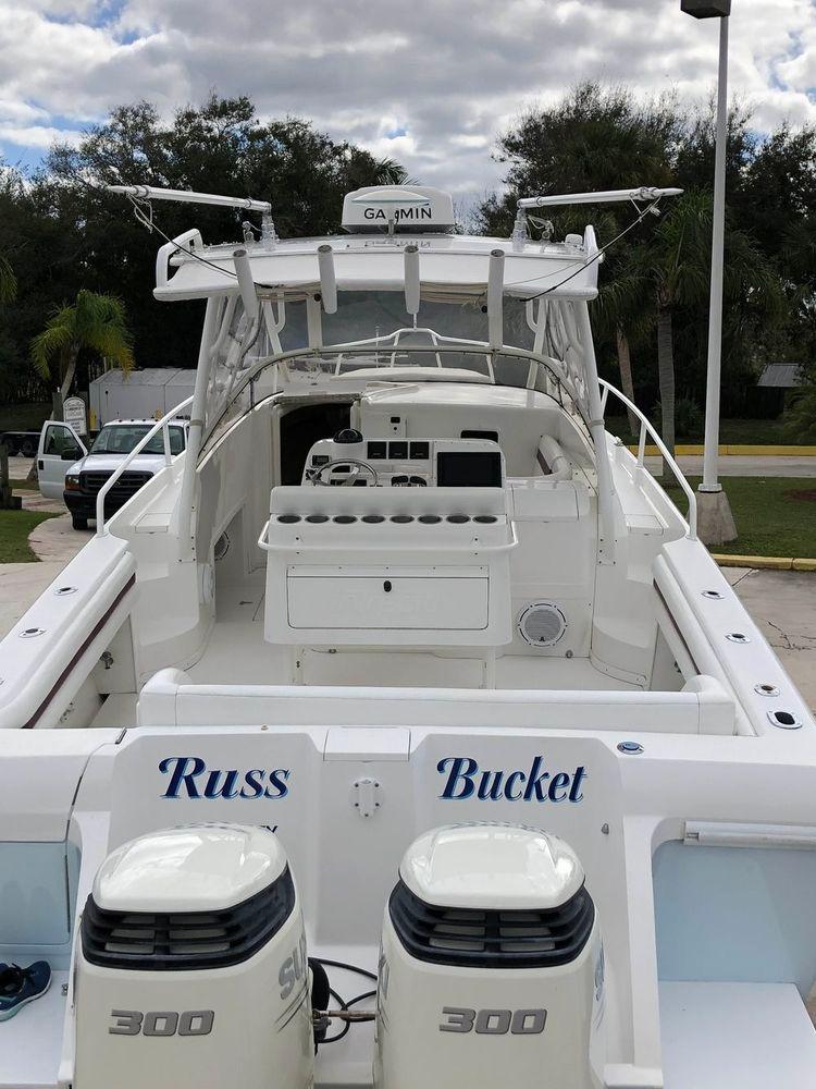 This is the one you have been waiting for! She has had a full refit and shows like a new boat. Suzuki 300s with only 149 hrs and warranty until November 2023! Flawless Ice Blue hull sides, Crystal Clear Enclosure, Like New Upholstery, and all New Powder-Coated Metals. She also features an updated Garmin electronics package with a touchscreen Plotter, VHF, Autopilot, Radar, and this one even has AIS. Entertainment options include a Fusion Stereo with JL Audio speakers and Subwoofer, Flatscreen TV and DVD Player. Other notable features include a New generator installed in 2015, Bow thruster, Custom Hardtop Extension, U/W Lights, Updated Rupp Revolution Riggers, Full covers for seating and Console, and a Custom Bow to Stern Full Mooring Cover. This boat was also built with the upgraded and desirable KEVLAR HULL. This boat must be seen and will likely sell to the first real buyer.