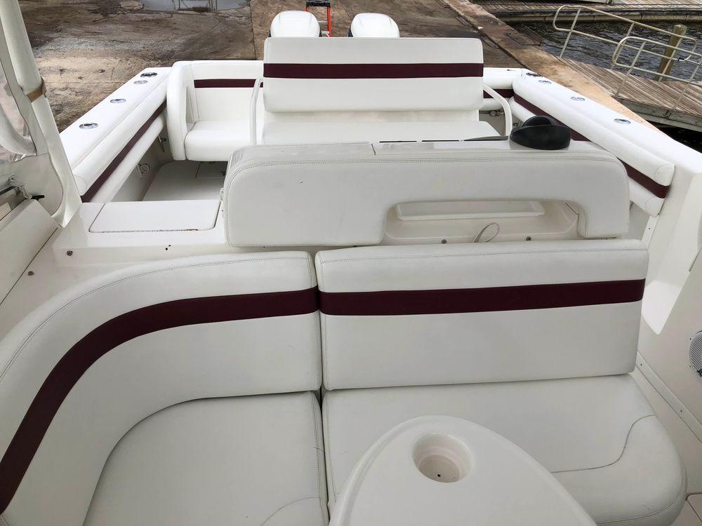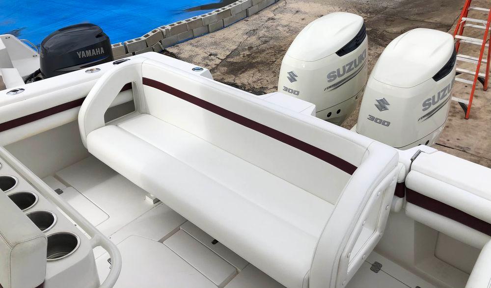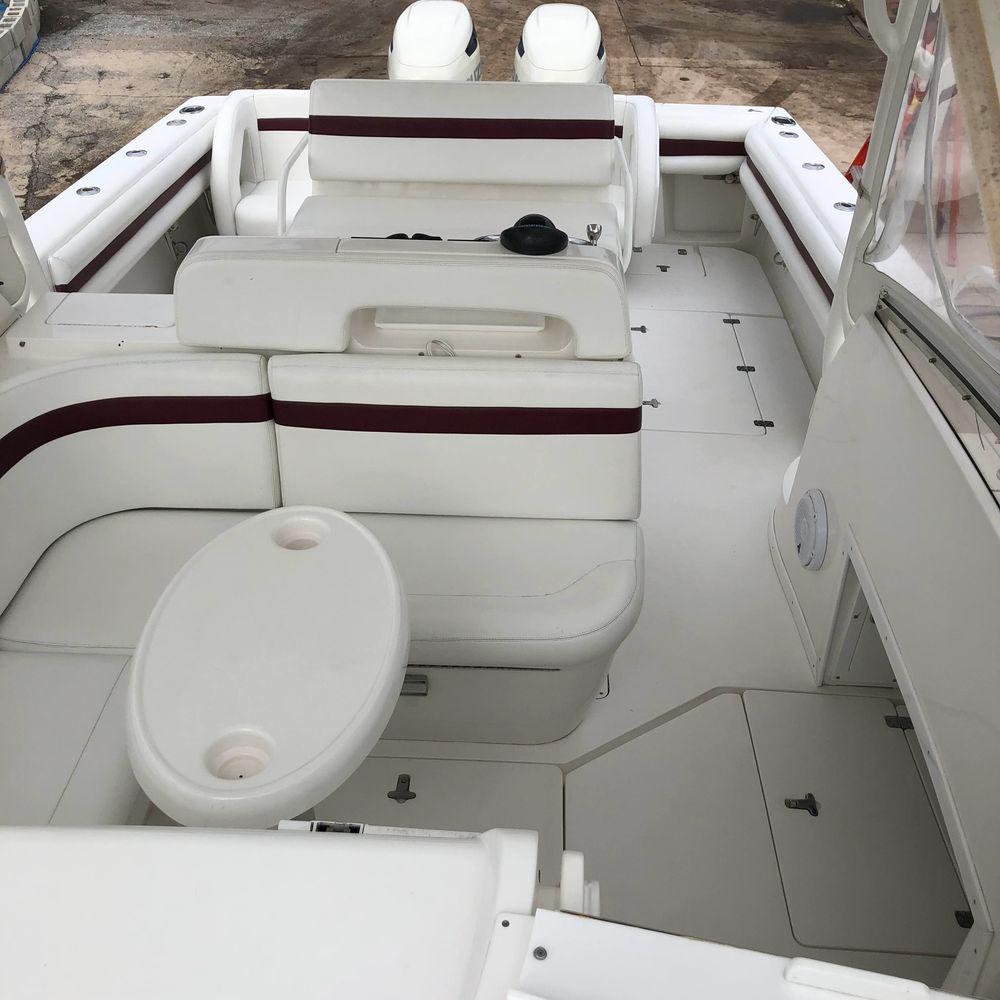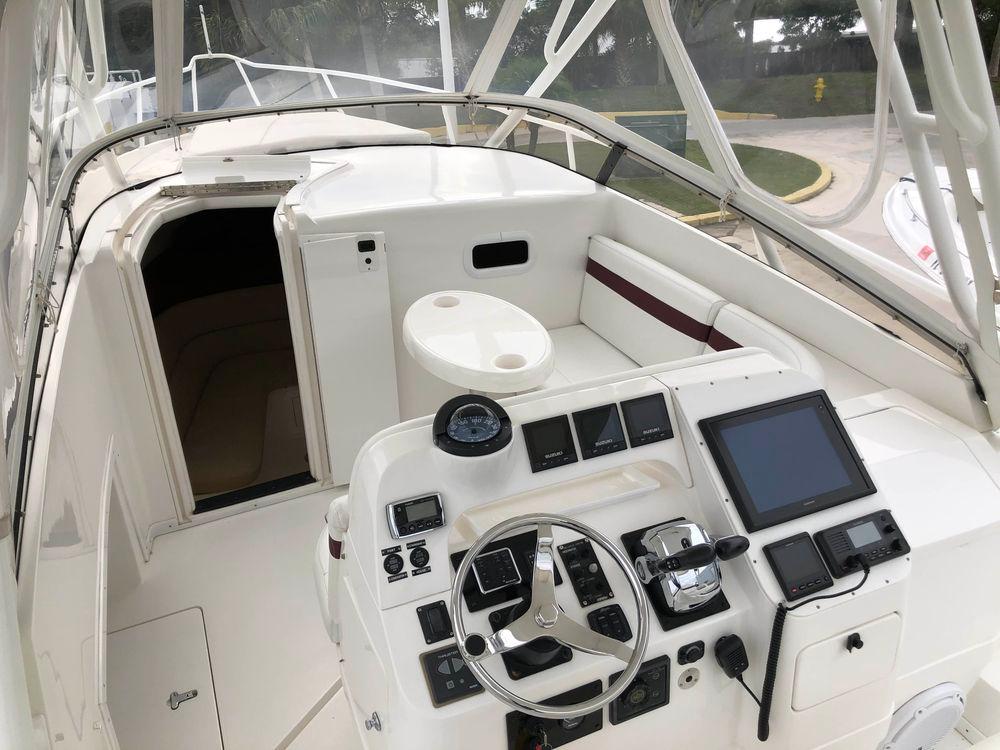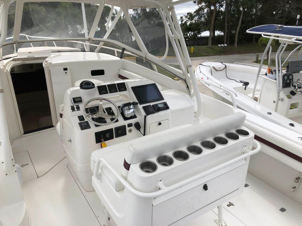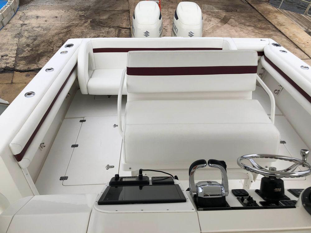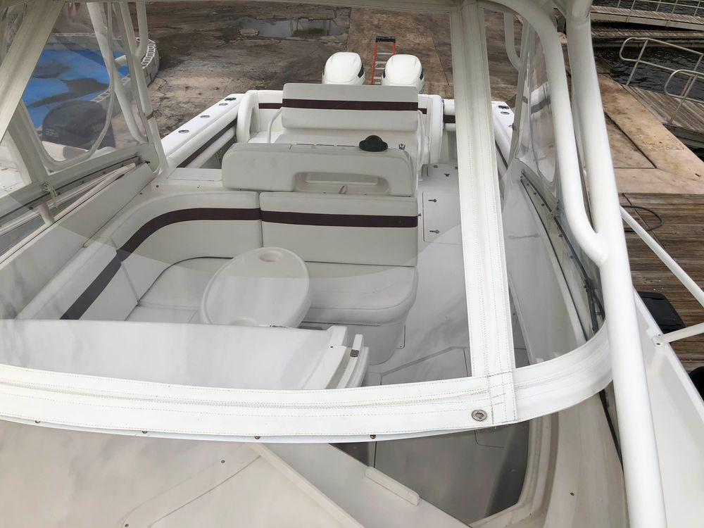 This is the one you have been waiting for! She has had a full refit and shows like a new boat. Suzuki 300s with only 149 hrs and warranty until November 2023! Flawless Ice Blue hull sides, Crystal Clear Enclosure, Like New Upholstery, and all New Powder-Coated Metals. She also features an updated Garmin electronics package with a touchscreen Plotter, VHF, Autopilot, Radar, and this one even has AIS. Entertainment options include a Fusion Stereo with JL Audio speakers and Subwoofer, Flatscreen TV and DVD Player. Other notable features include a New generator installed in 2015, Bow thruster, Custom Hardtop Extension, U/W Lights, Updated Rupp Revolution Riggers, Full covers for seating and Console, and a Custom Bow to Stern Full Mooring Cover. This boat was also built with the upgraded and desirable KEVLAR HULL. This boat must be seen and will likely sell to the first real buyer.