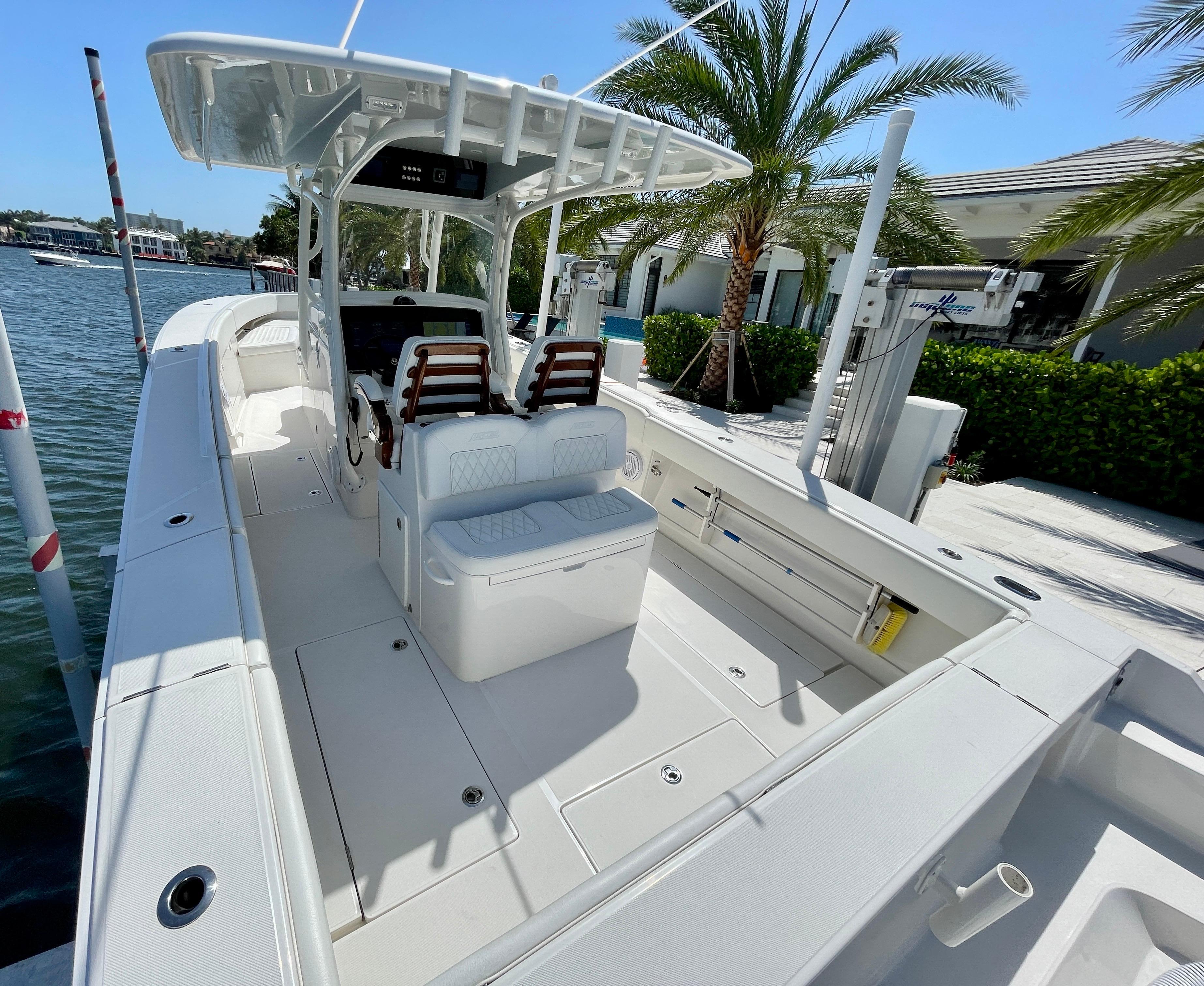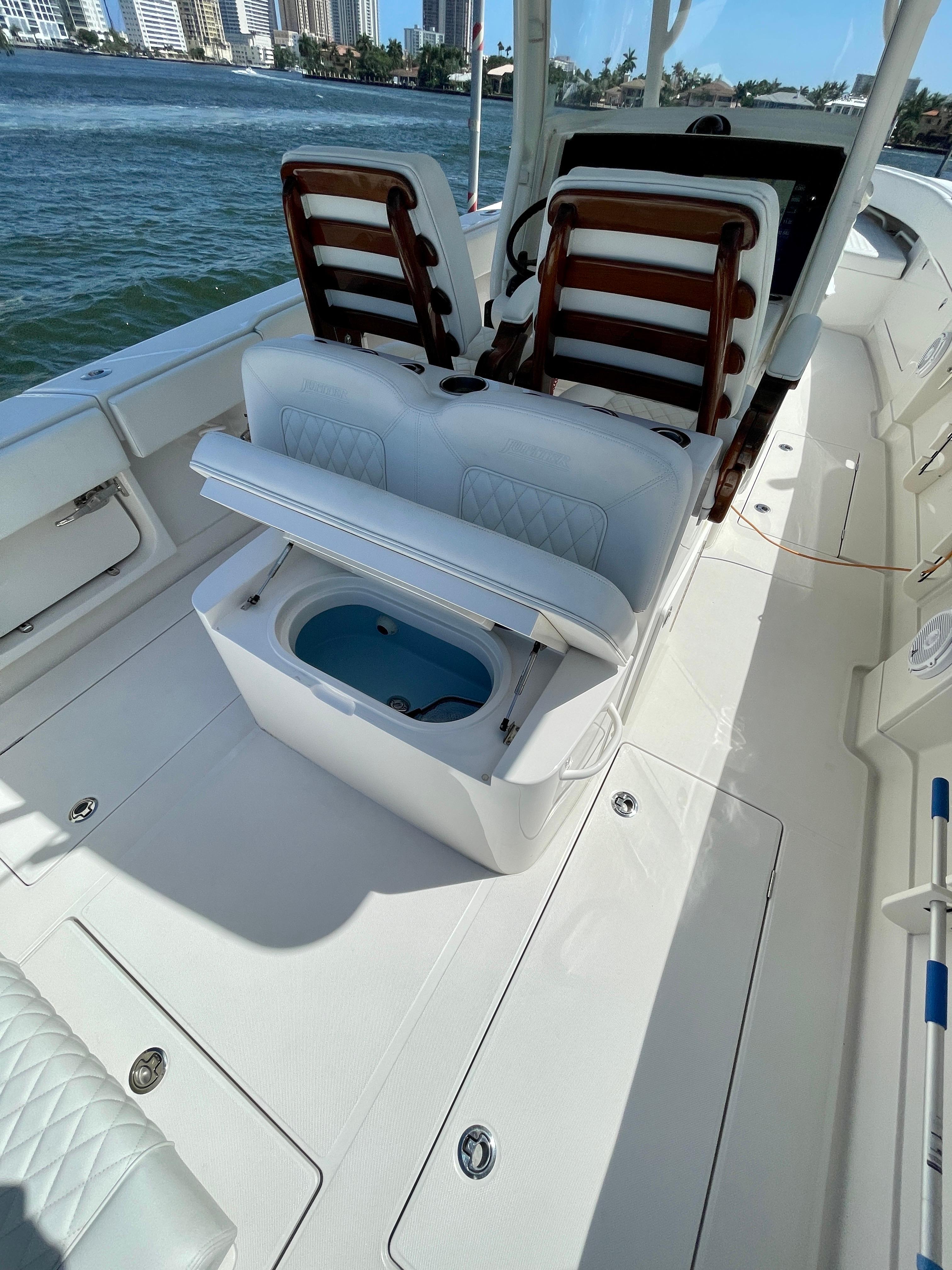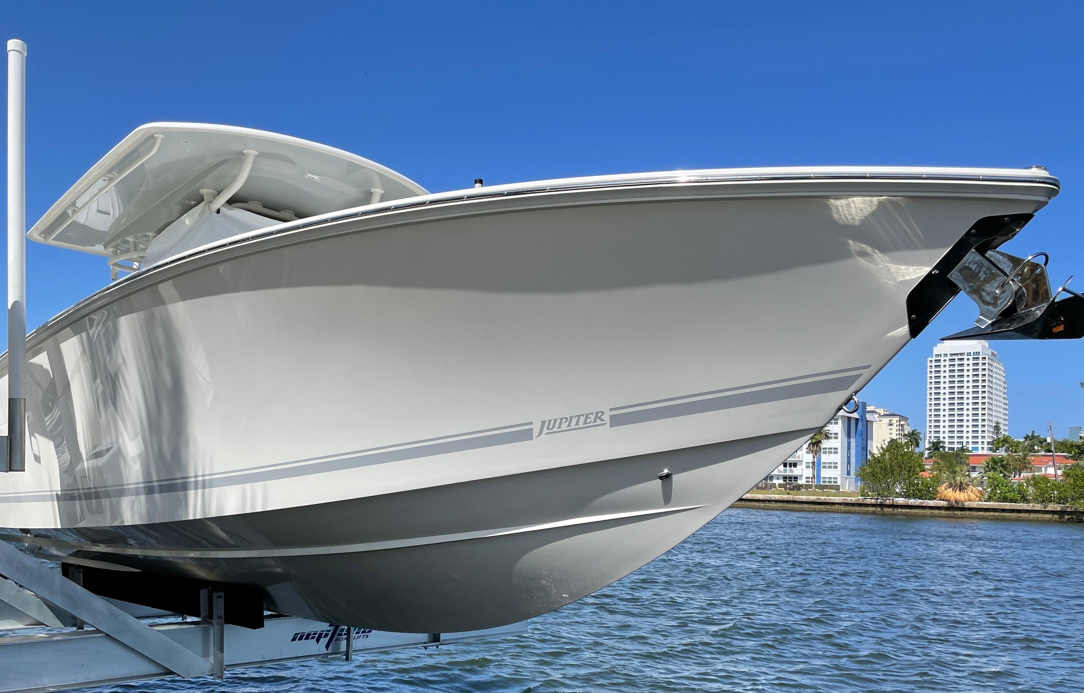 This like new 34’ Jupiter was delivered NEW to it’s first, and only owner 10 months ago (June 2021). Remaining balance of Jupiter 12-Month warranty, and Yamaha 5-Year warranty still applicable. Lift kept with no bottom paint since new.
