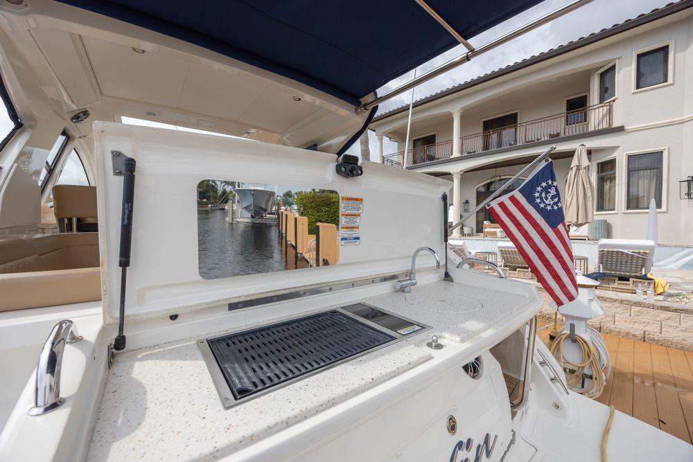 The pre-loved Sundancer 350 Coupe headlines Sea Ray's most iconic series. With a sleek hardtop and enhanced coupe foredeck seating/lounging zone, the Sundancer 350 Coupe is a brilliant entertaining platform and an inviting place to spend entire weekends on the water. This 2019 Sea Ray Sundancer 350 coupe is in superb condition and comes with many upgrades and has been meticulously maintained. You can tell by the immaculate and bone-dry engine room; no detail was left unkept. Overall, she is an excellent, reliable, and hardy family boat. You can operate her as a day boat cruising up and down the intercoastal or pop down to the Keys or for some island hopping over in the Bahamas.