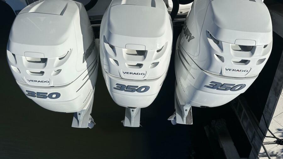 • Triple 350 mercury verados – Power, efficiency, and reliability for seamless cruising or fishing.