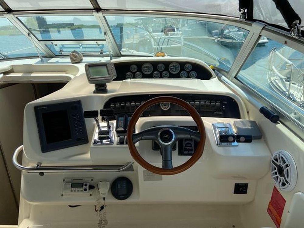 This Sea Ray model is a very stylish model with comfortable accommodations for 6. The boat has been yard maintained and is in perfect running shape with records to prove its service. The engines are freshwater-cooled and have had exhaust manifolds and risers recently replaced.