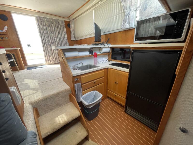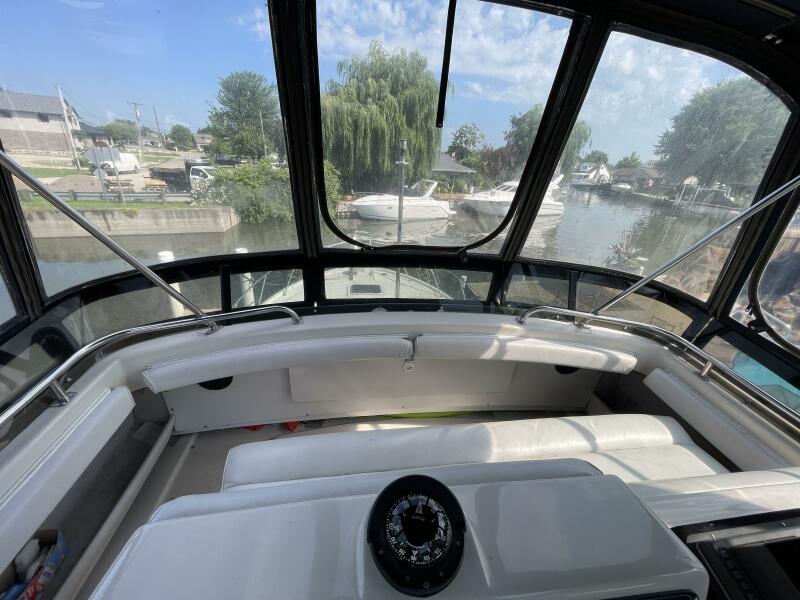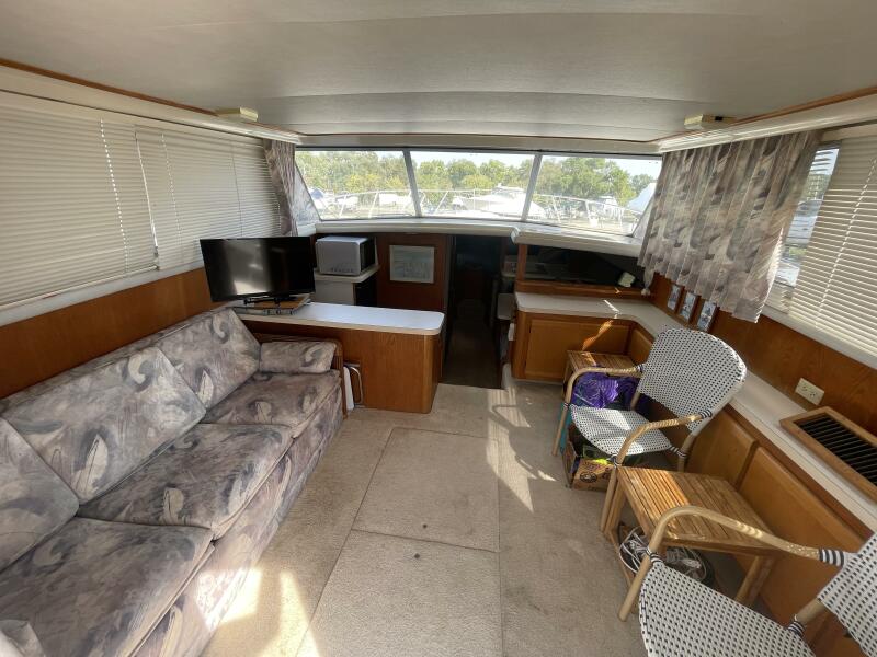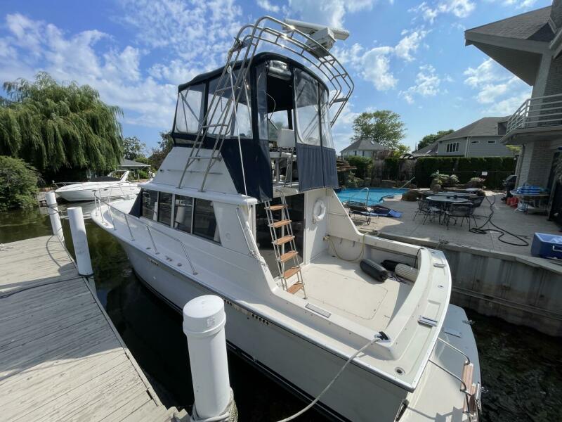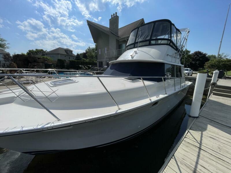 BROKER NOTES: Lifetime Fresh Water Boat! Exterior shows in good condition. Cabin shows in excellent condition. New rear flybridge isinglass 2023. New port side Transmission (2024) Full mechanical tune ups (5/2023) (cap, wires, rotor, plugs, fuel filters). New Generator Battery (5/2023)