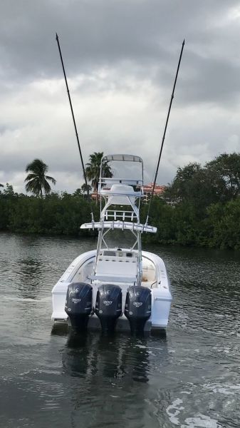 This Intrepid is powered by the most desirable package, Triple 300 hp Yamahas, and is maintained by the local dealer. New Upholstery in 2018.