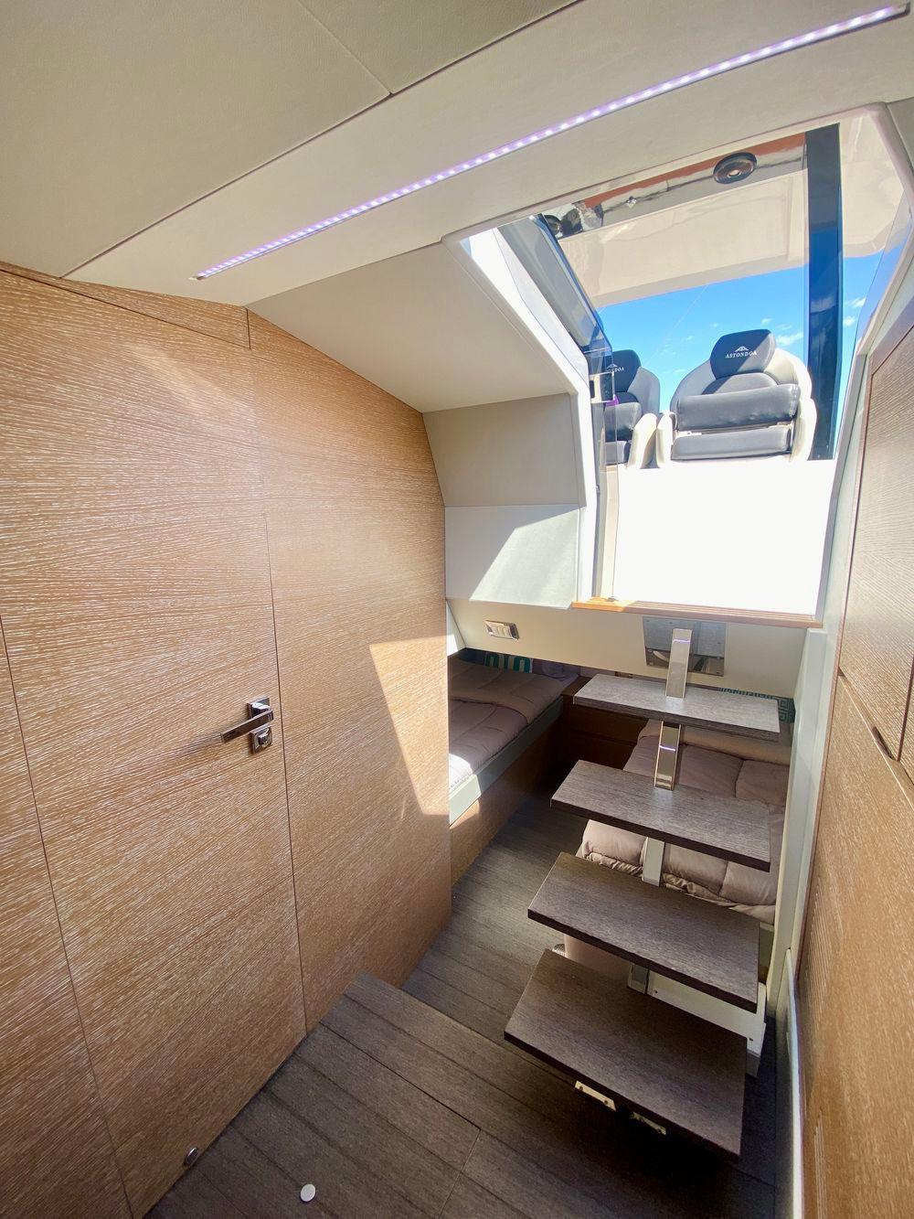 Astondoa proves the versatility of its customization with its model from the exclusive “Coupe” yacht cruiser line, the 377 Coupe Outboard. With the success of the initial 655 Coupe, clients looked for a more compact version for day jaunts, yet Astondoa delivered a sporty boat with yacht-like amenities.