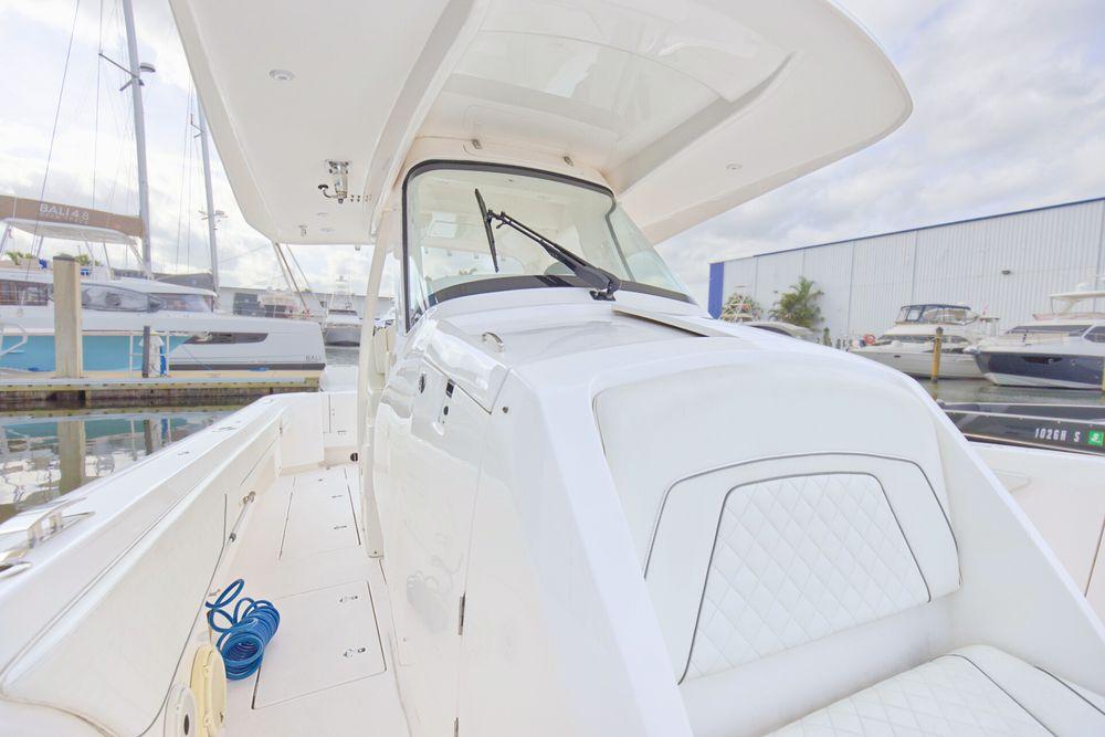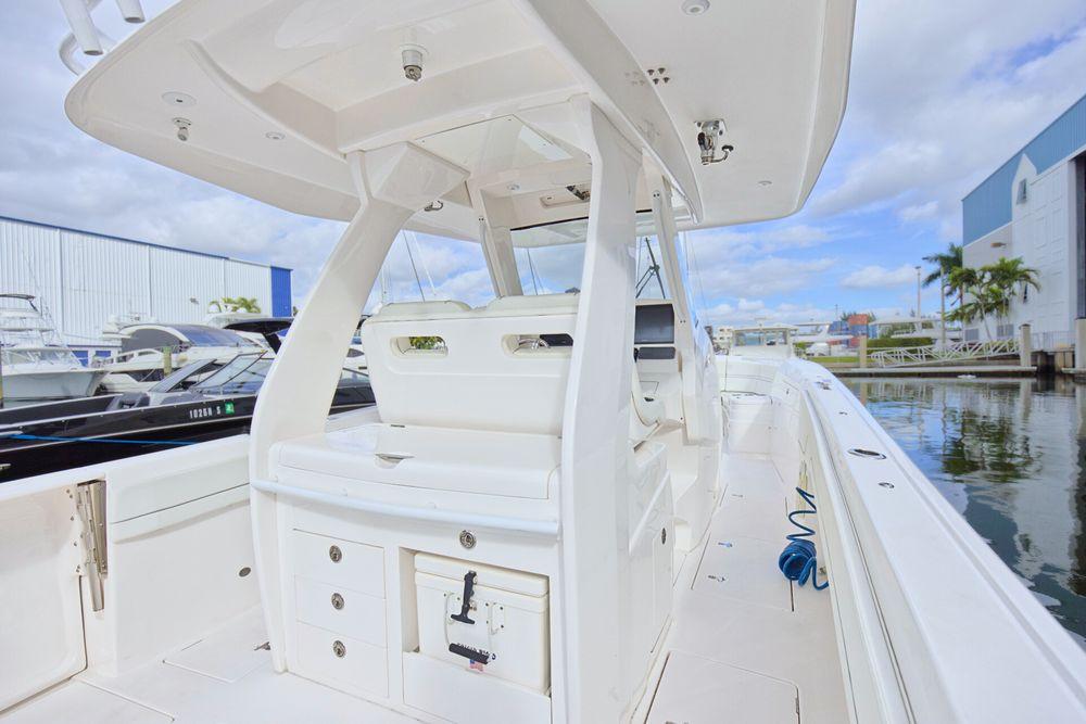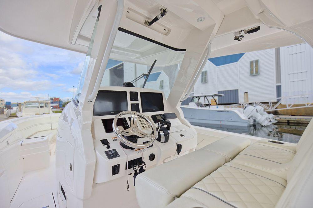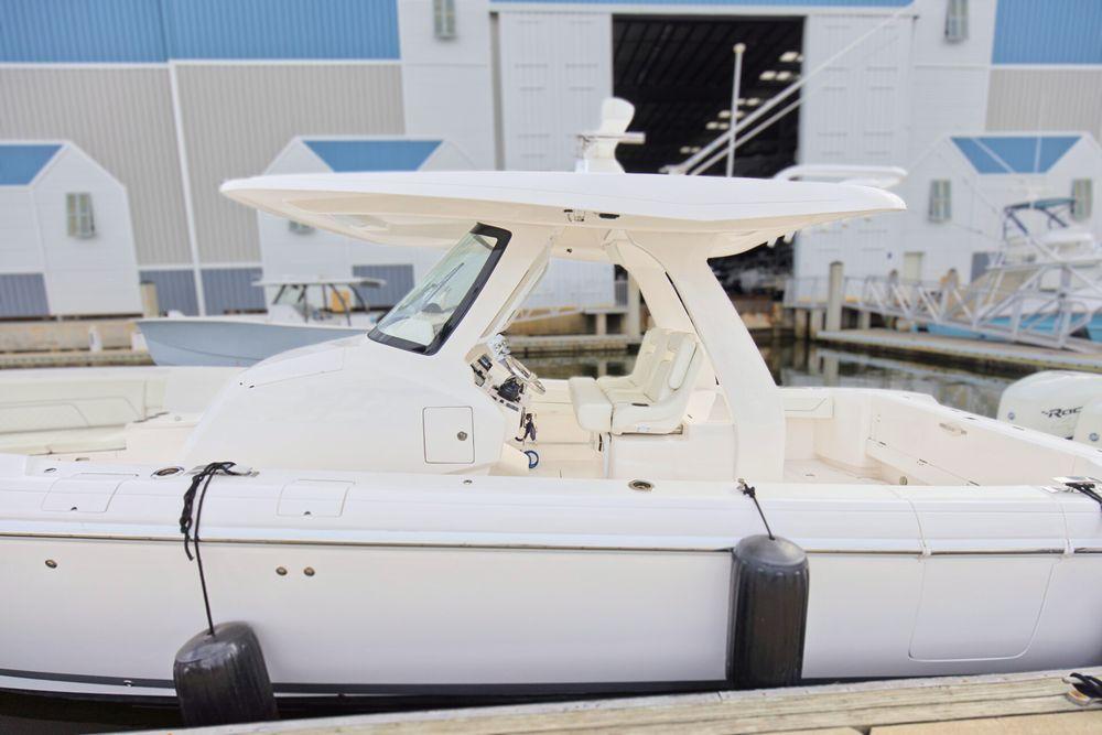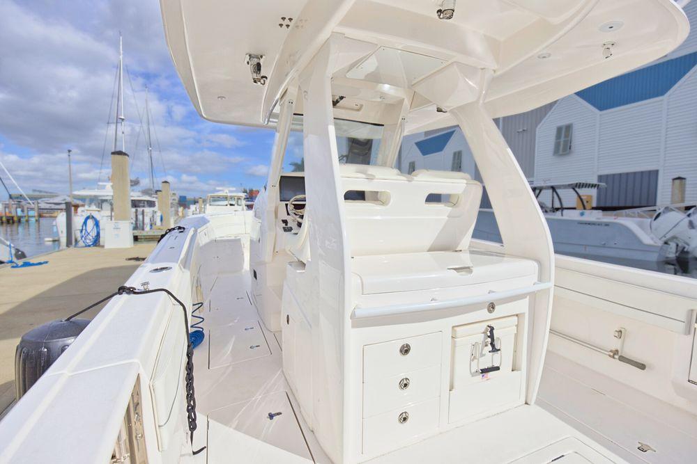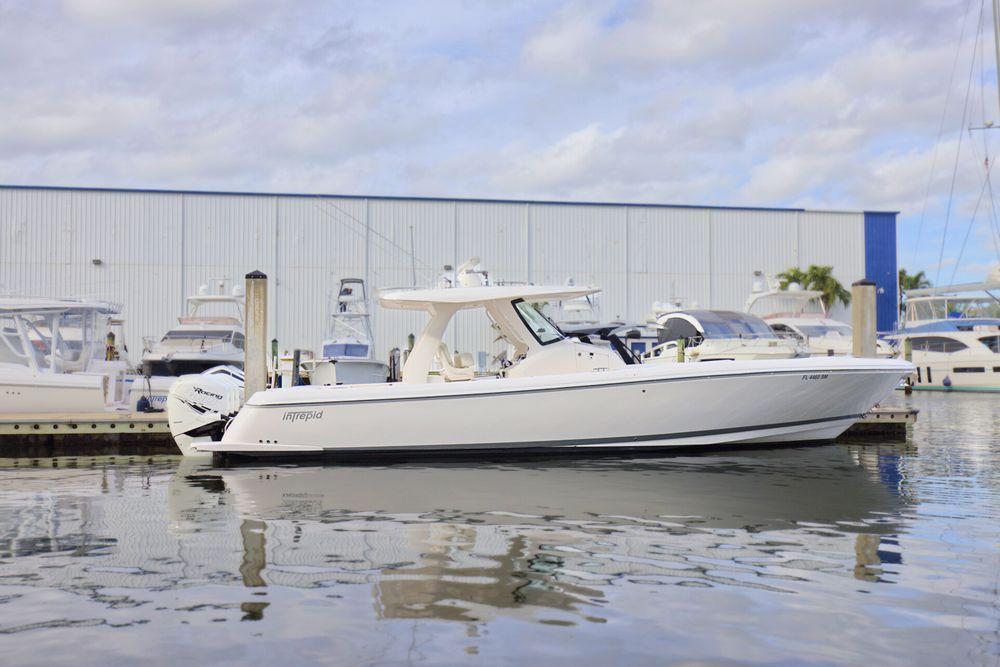 The 375 Nomad SE brings the best of Intrepid boats aboard one amazing center console. Fully loaded with all available options, this crew maintained Intrepid can serve as a towed tender with Double eyes, fishing boat or the ultimate cruiser. The versatility of the hi-low actuating table that adjusts to 3 different settings. It can sit flush with the cockpit for more walking room, become a filler for more space to lounge in the forward seating, or raise to a full height table. The push of a button raises the cockpit sole up 4” of additional height. Triple 400's can get you there when you want it. Tremendous storage and features. So, for anyone who’s ever said “you can’t have it all”, we invite those people to step aboard this 375 Nomad SE.