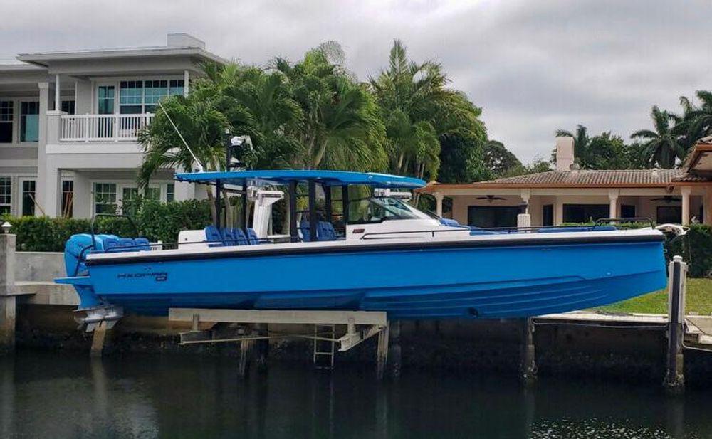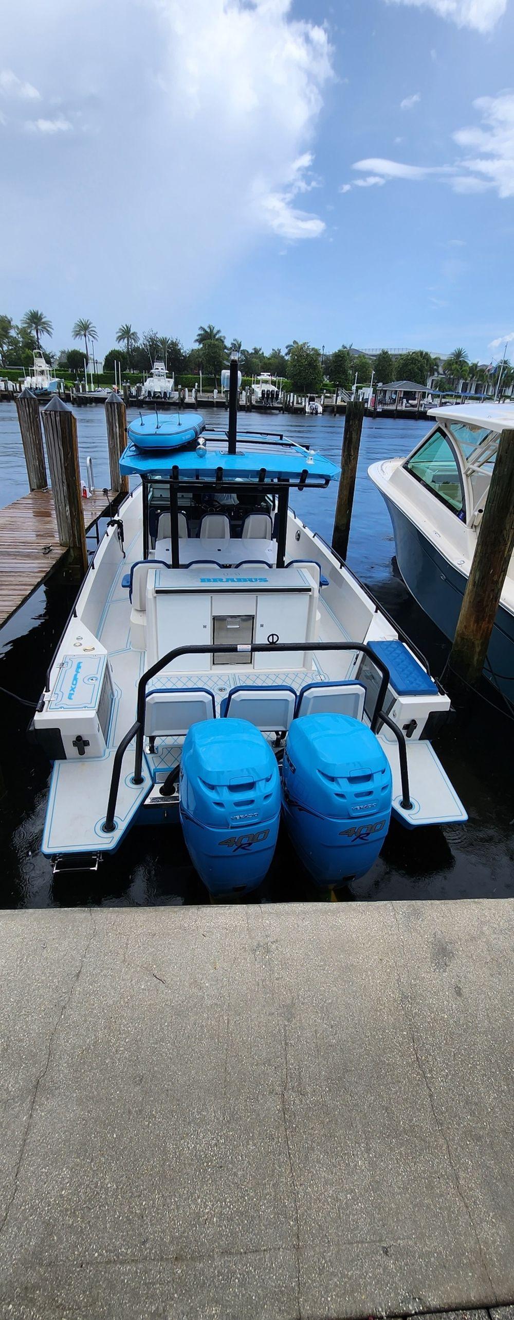 Axopar 37 Sun-Top Brabus Package 2019 Miami Blue Color, low hours , no bottom paint and kept in Dry Storage .